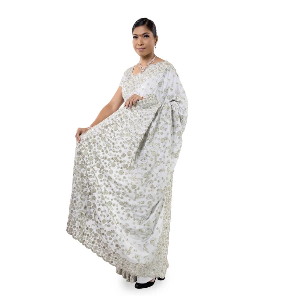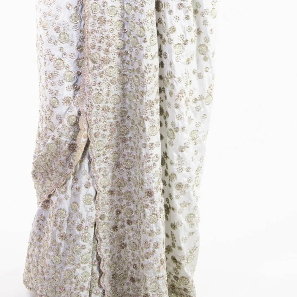 Satin Silk saree with bead work embroidery - Gray Size: XXS, Color: Gray
