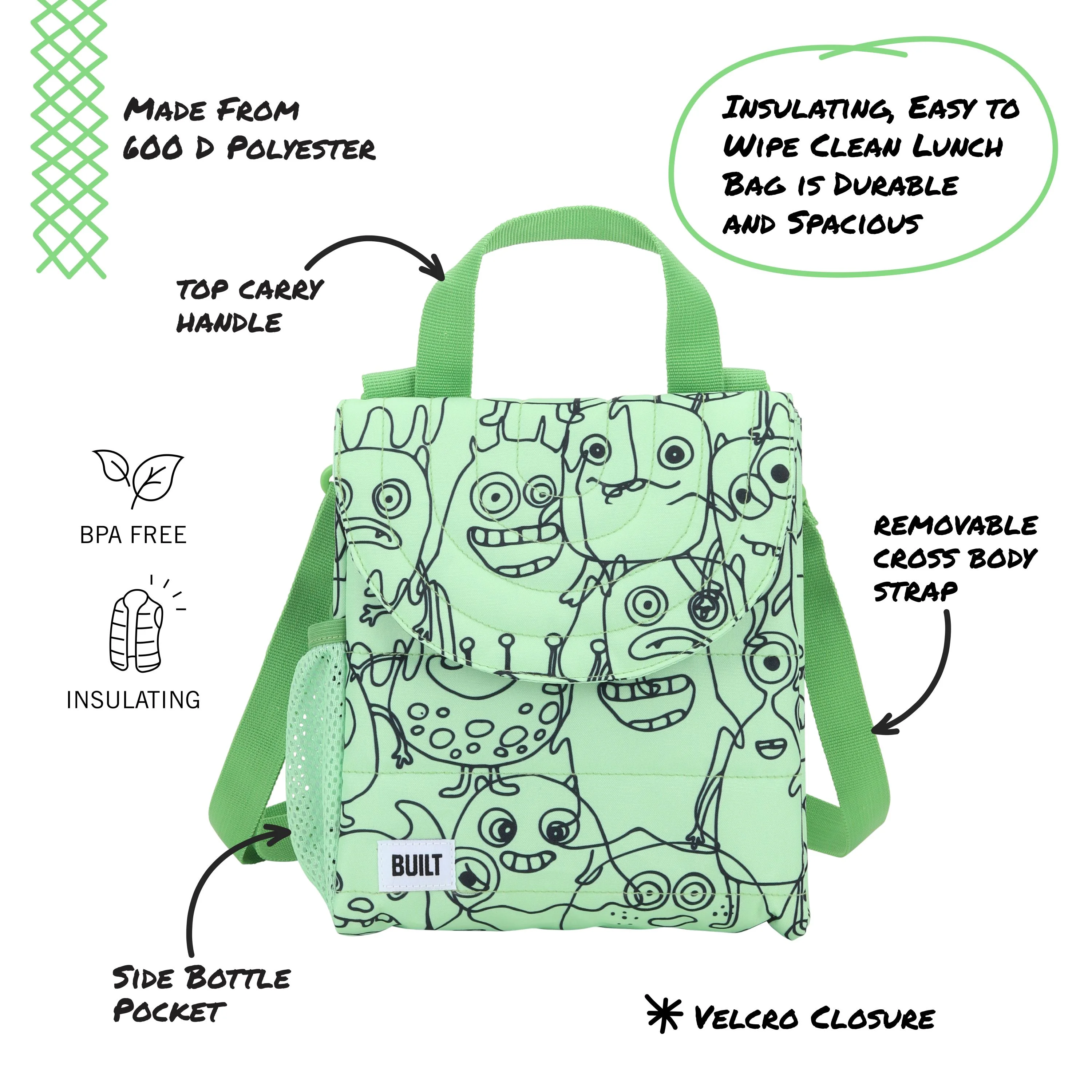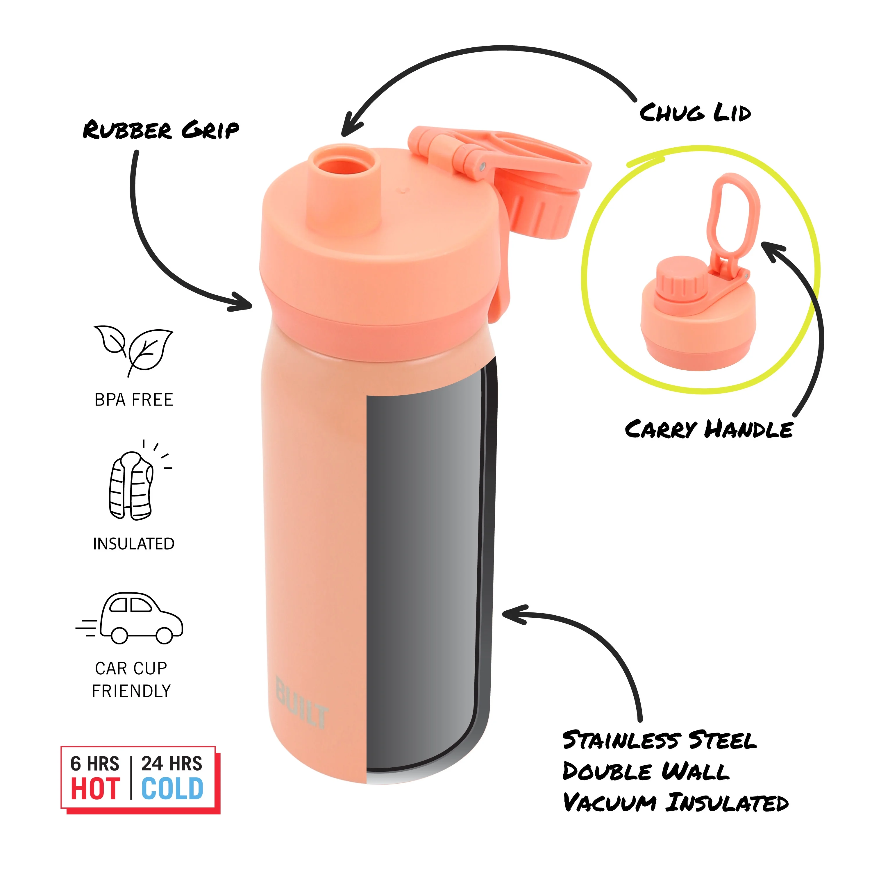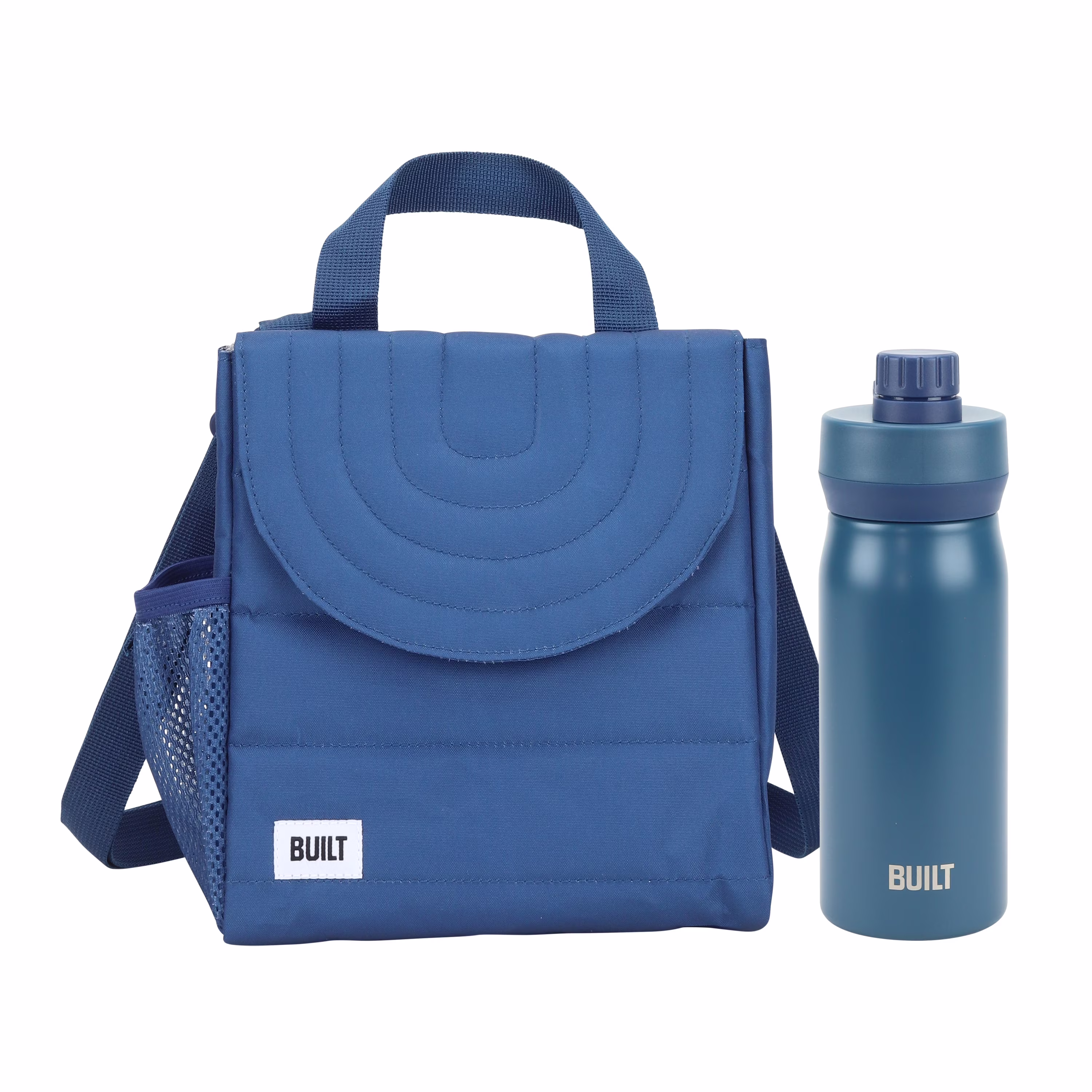 Built Kids Reusable Lunch Bag and 16 fl oz Cascade Stainless Steel Water Bottle Chug Lid Bundle Blue