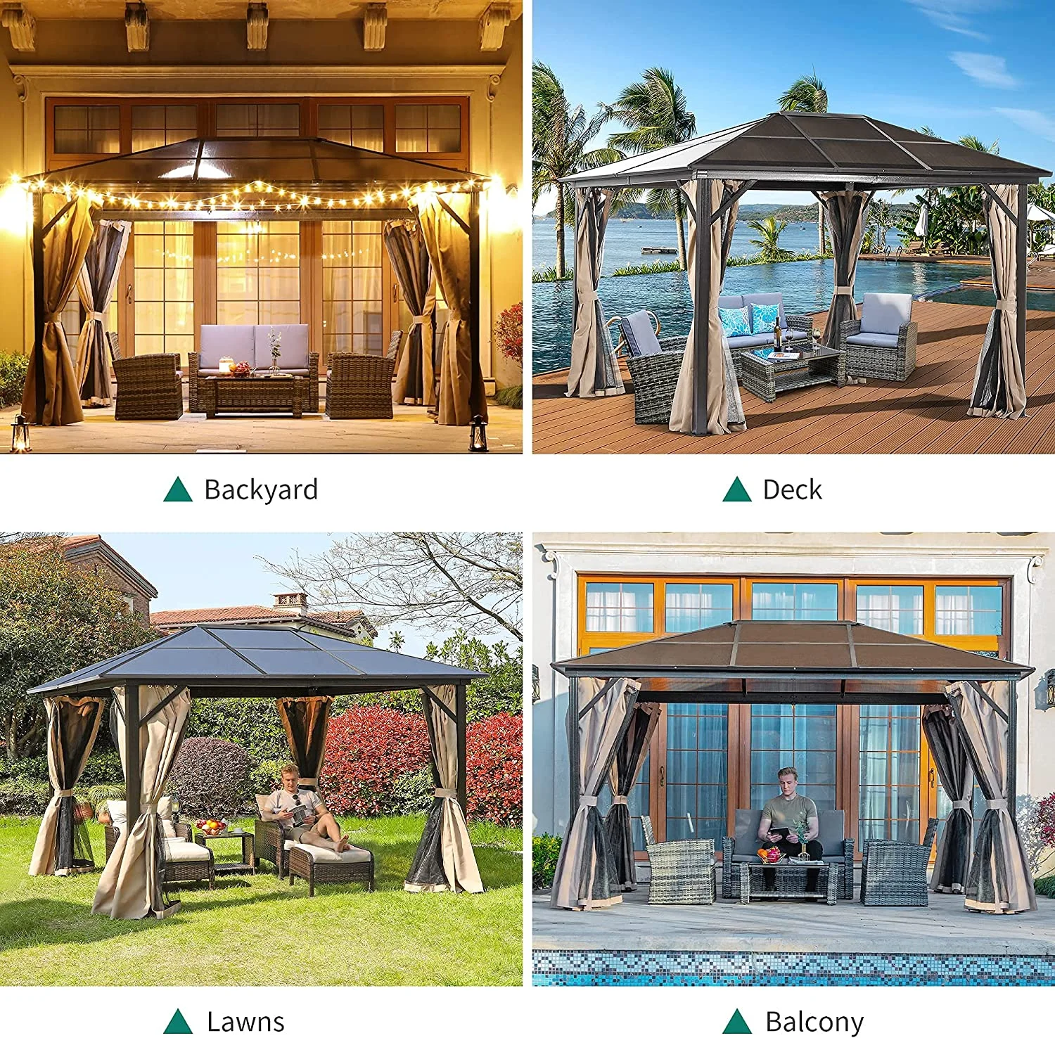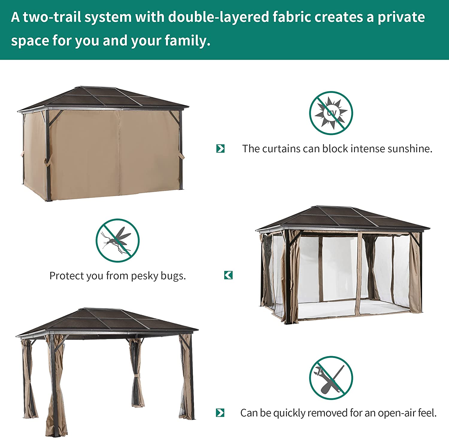 Replacement Canopy for 10x12 Garden House Gazebo - Riplock 350 - Nutmeg