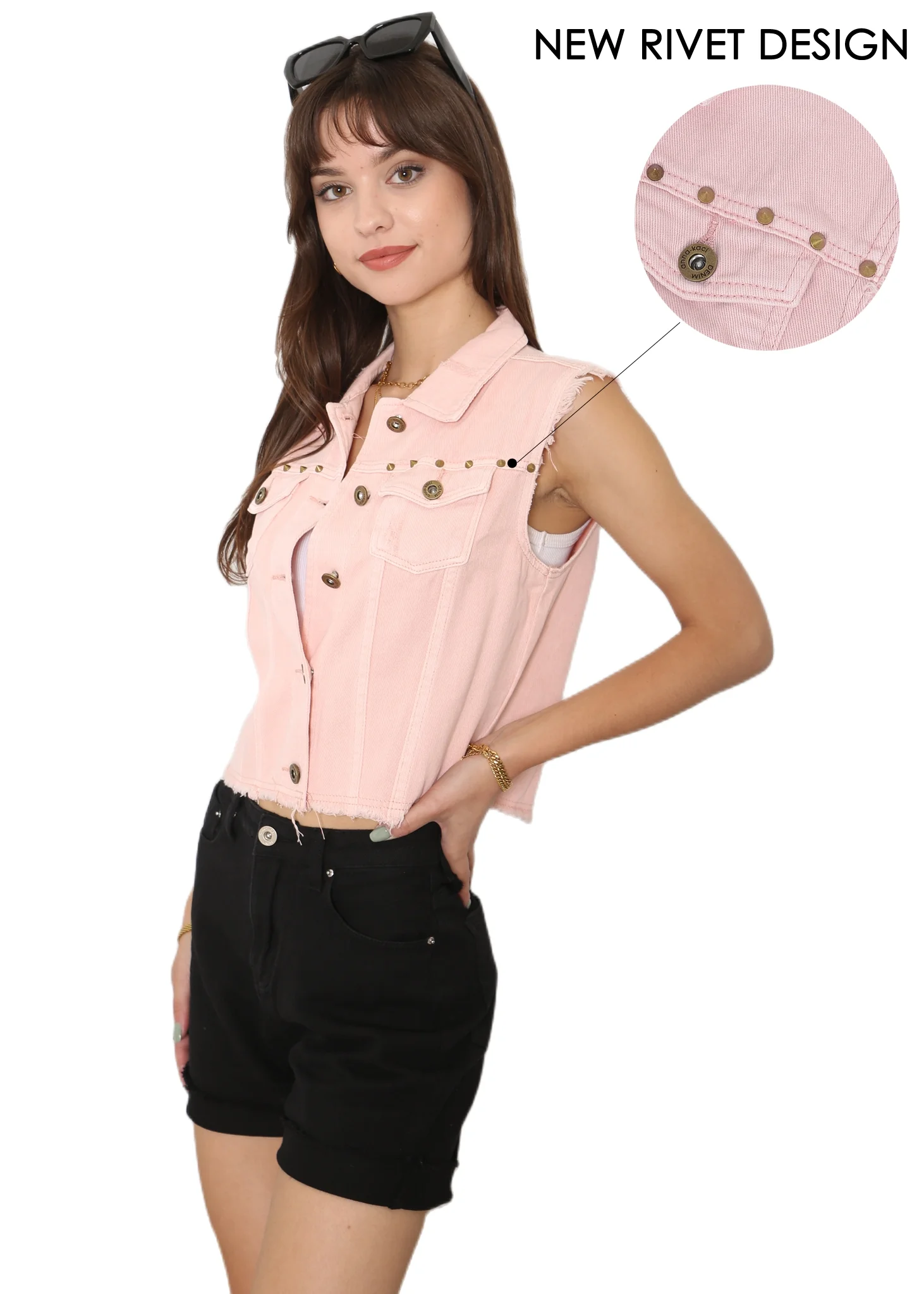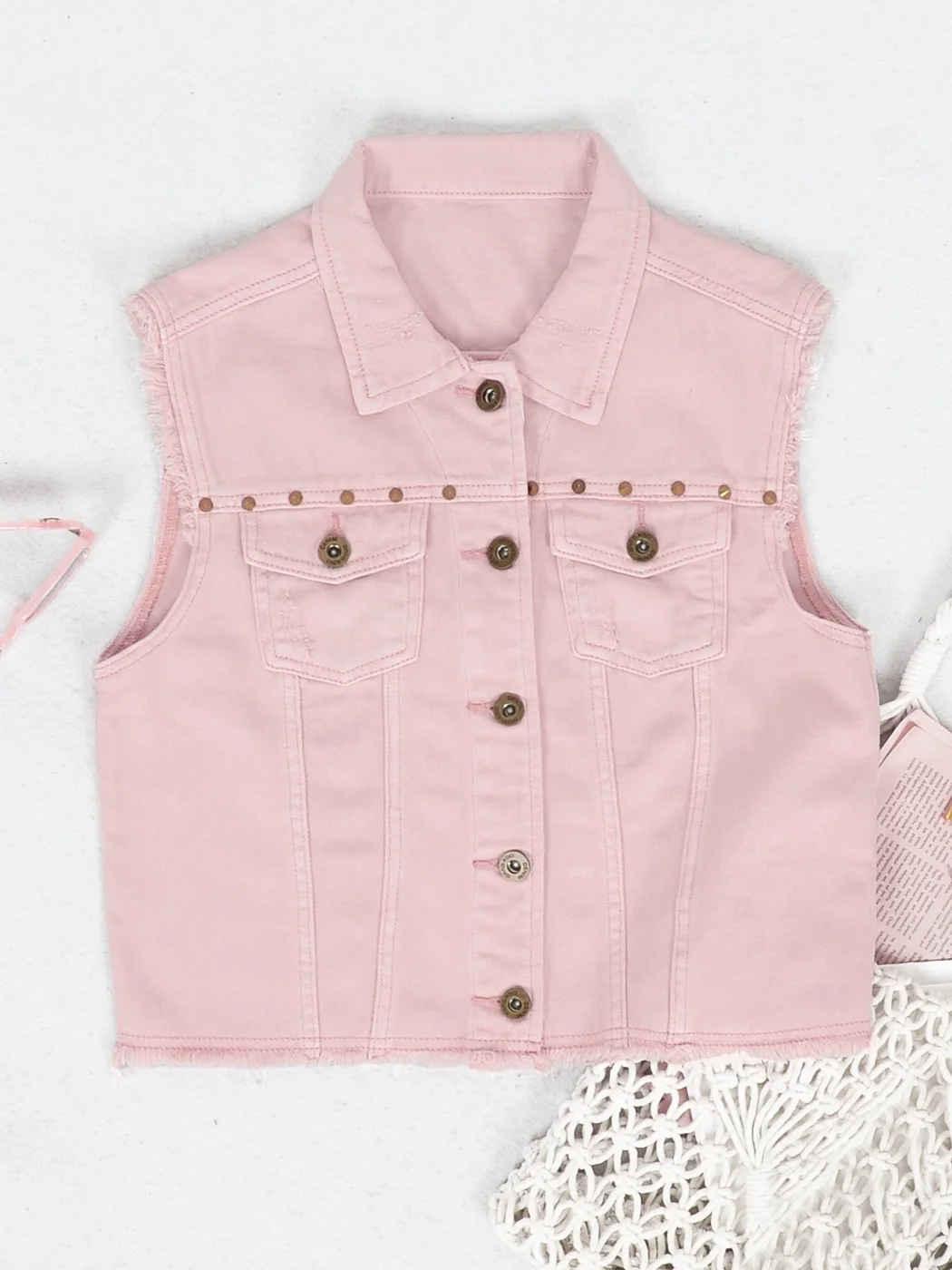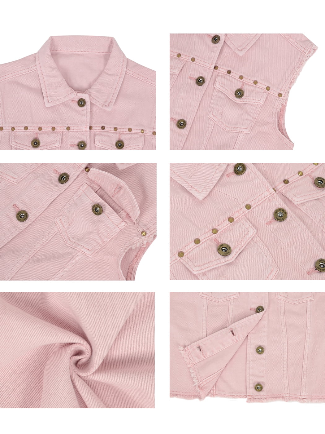 Womens Juniors Cotton Denim Blue Sleeveless Crop Jacket Jean Vest, Pink, XX-Large