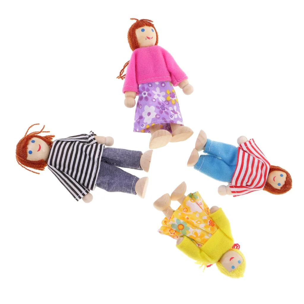 4 /12 Dollhouse Dolls Wooden Doll Family Pretend Play Figures, Family Role Play Pretend Play Mini People Figures
