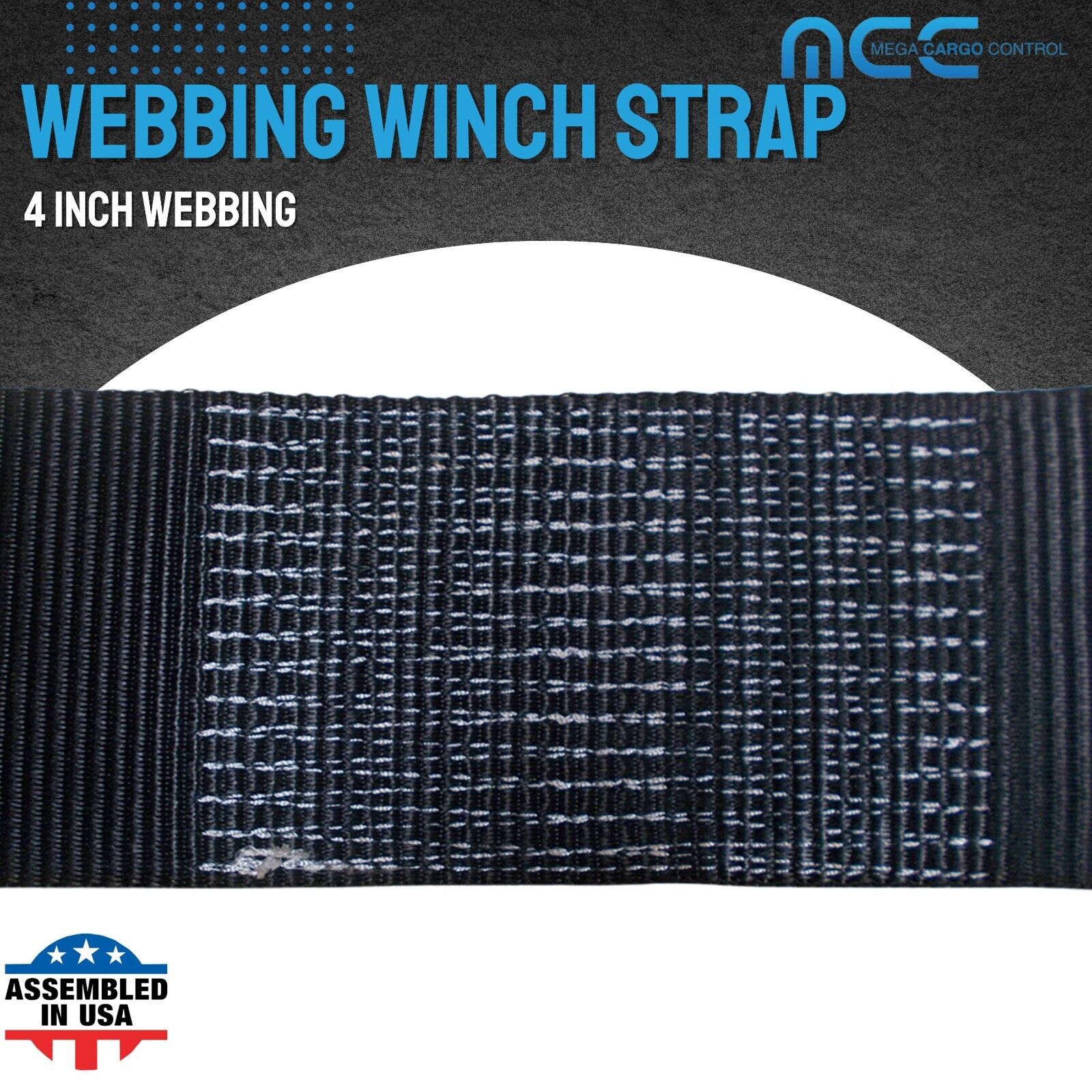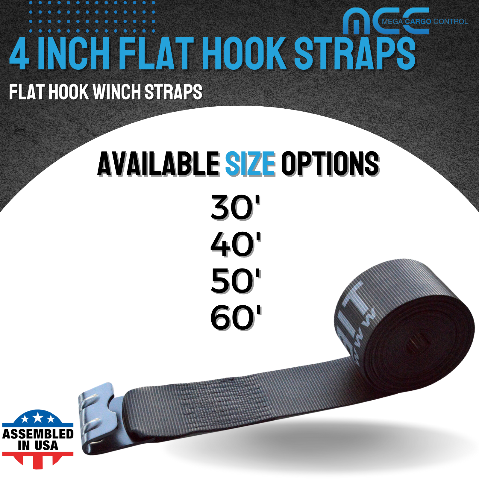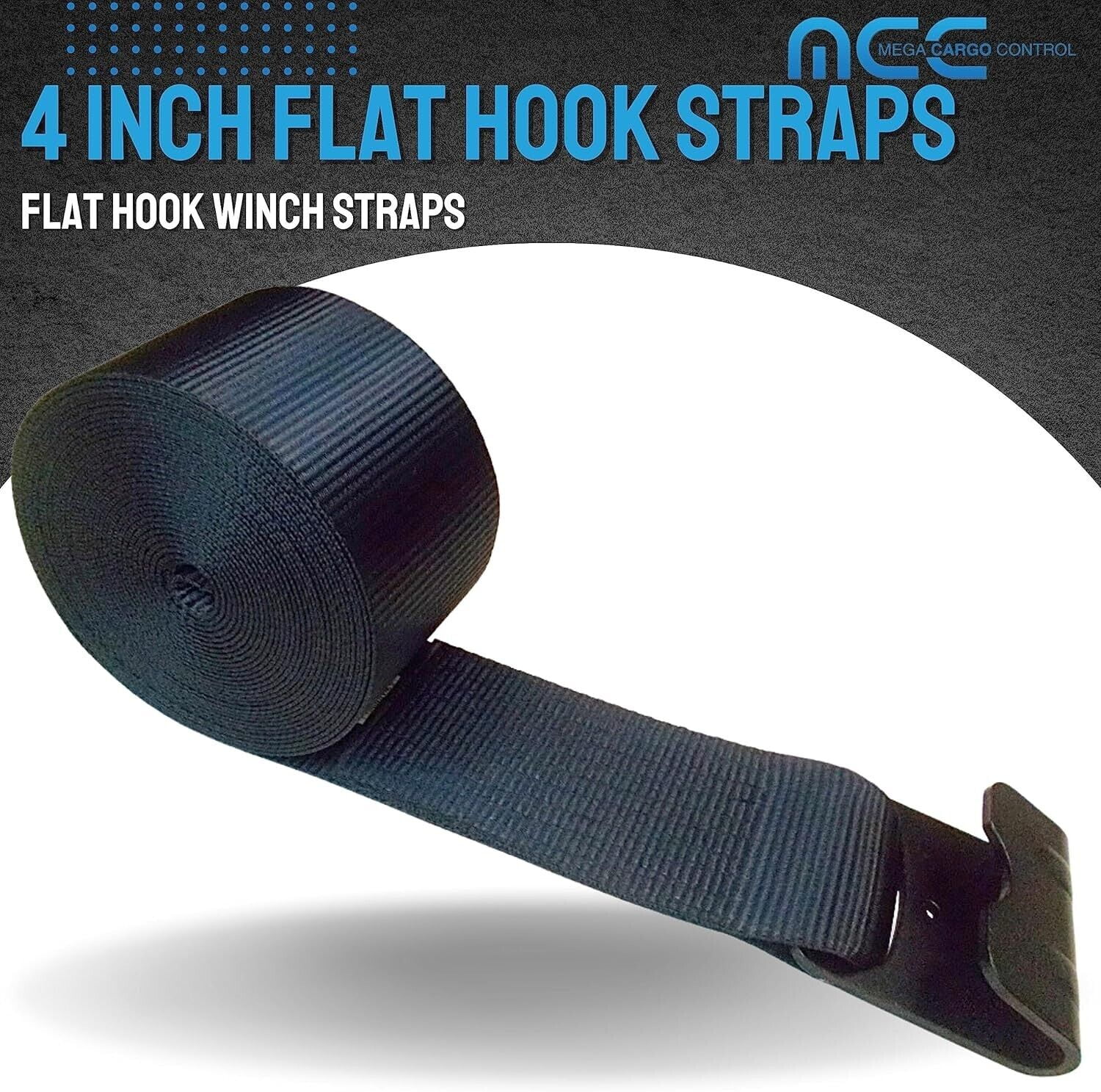 Mega Cargo Control USA 4" x 40' Winch Tie Down Strap W/ Flat Hook - (1-Pack) WLL: 5400 lbs Black