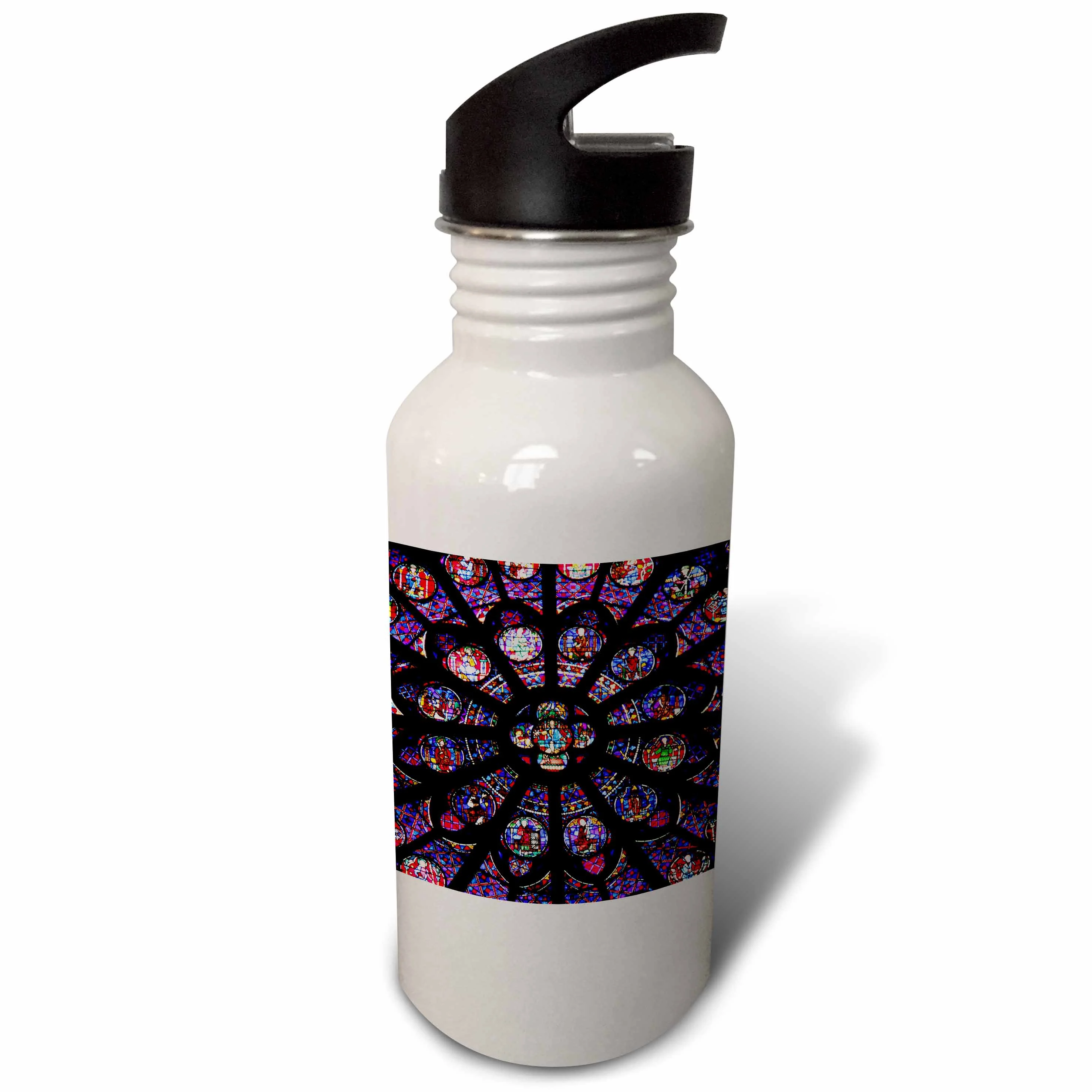 France, Paris. Stained glass windows of Notre-Dame Cathedral. 21 oz Sports Water Bottle wb-188736-1