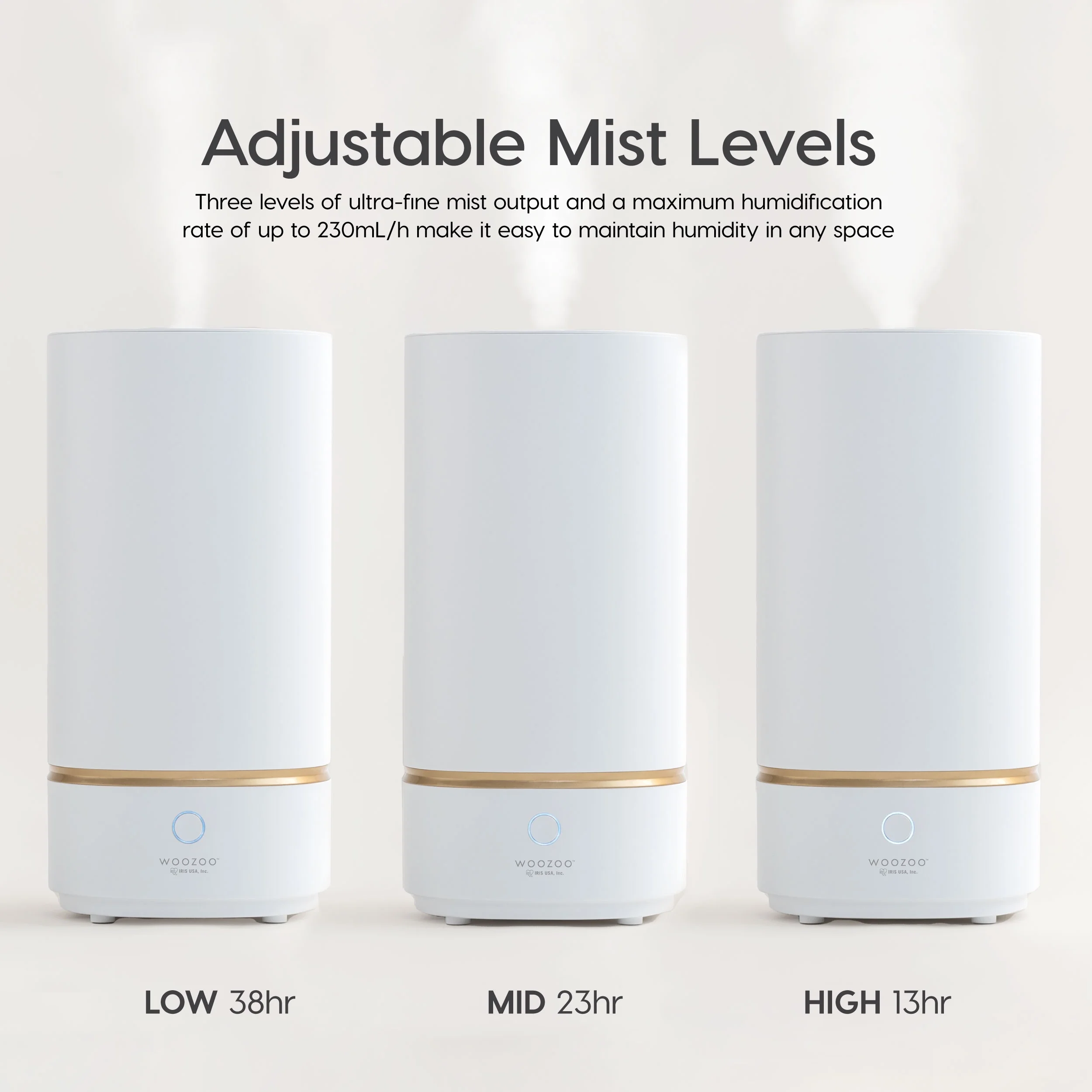 IRIS USA WOOZOO Ultrasonic Cool Mist Humidifier 3L Water Tank, Runs up to 38 hours