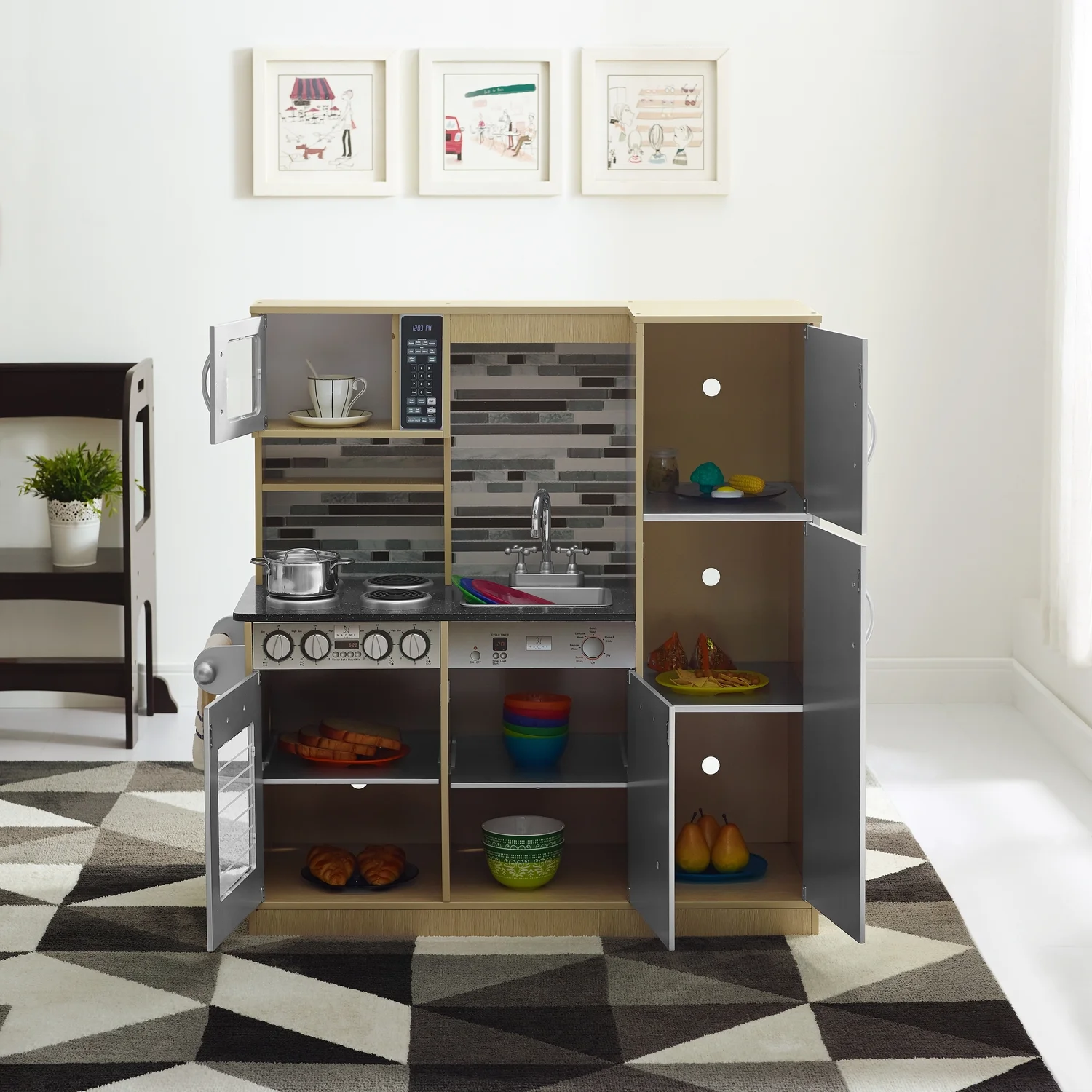 Kids Realistic Pretend Playset Toy Kitchen KIDKRAFT Set Wooden Kids Play Kitchen for Kids, Cook, Create, and Imagine in Style, Girls, Boys, Toddler, Ages 4-8 by Naomi Home, Natural