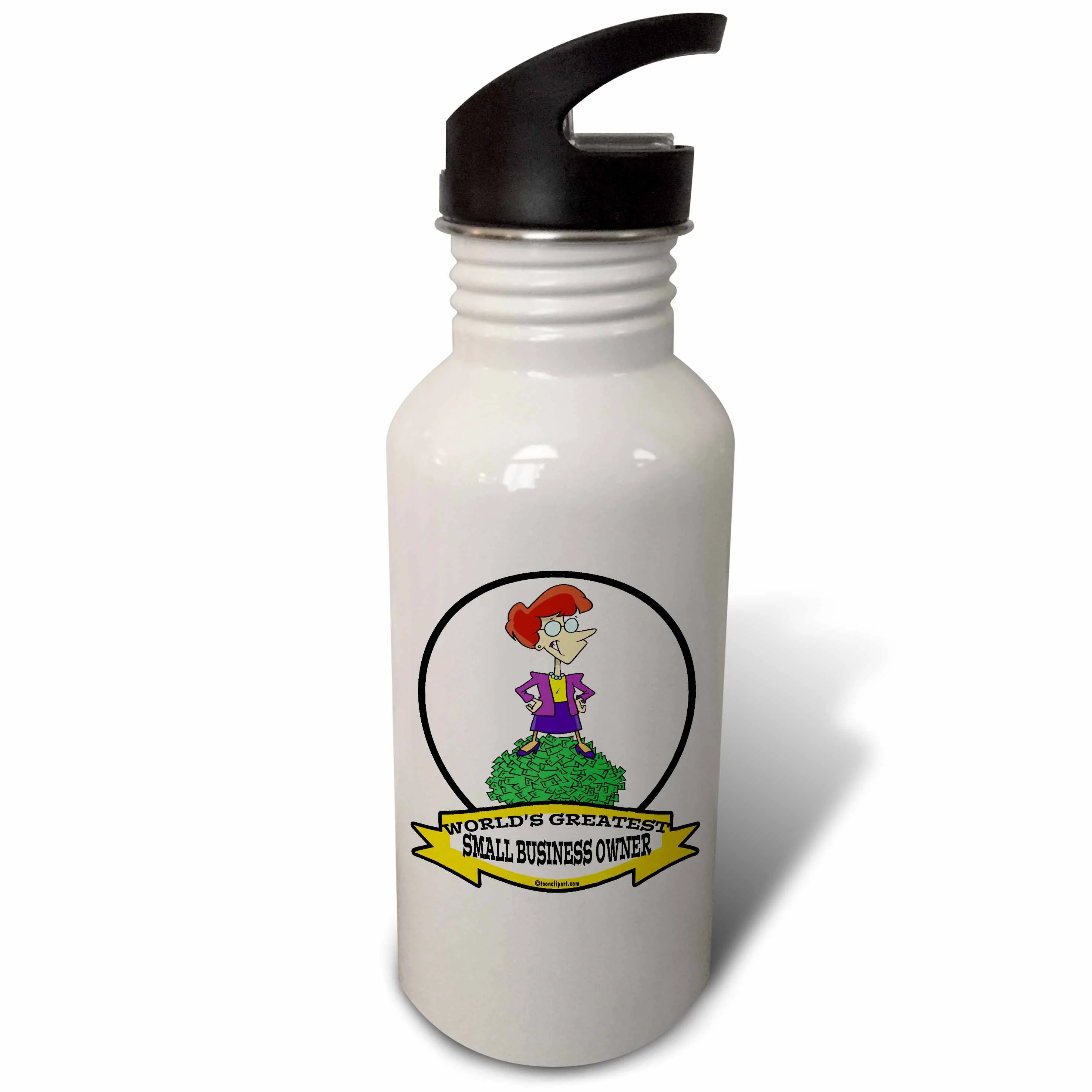 Funny Worlds Greatest Small Business Owner Woman Cartoon 21 oz Sports Water Bottle wb-103552-1