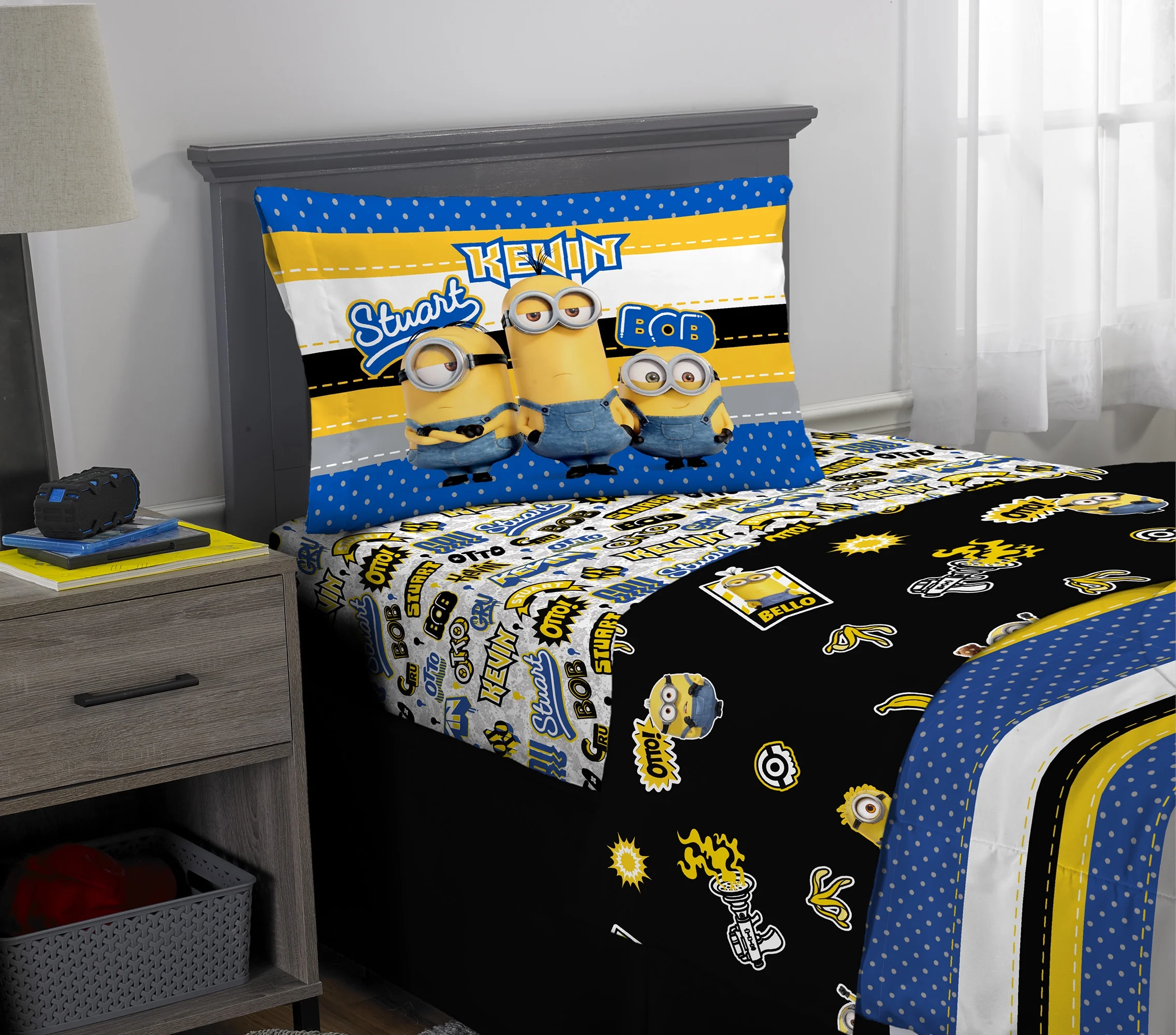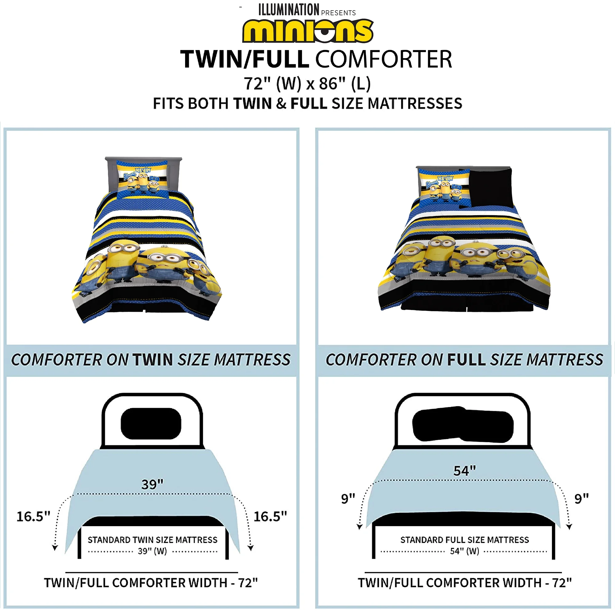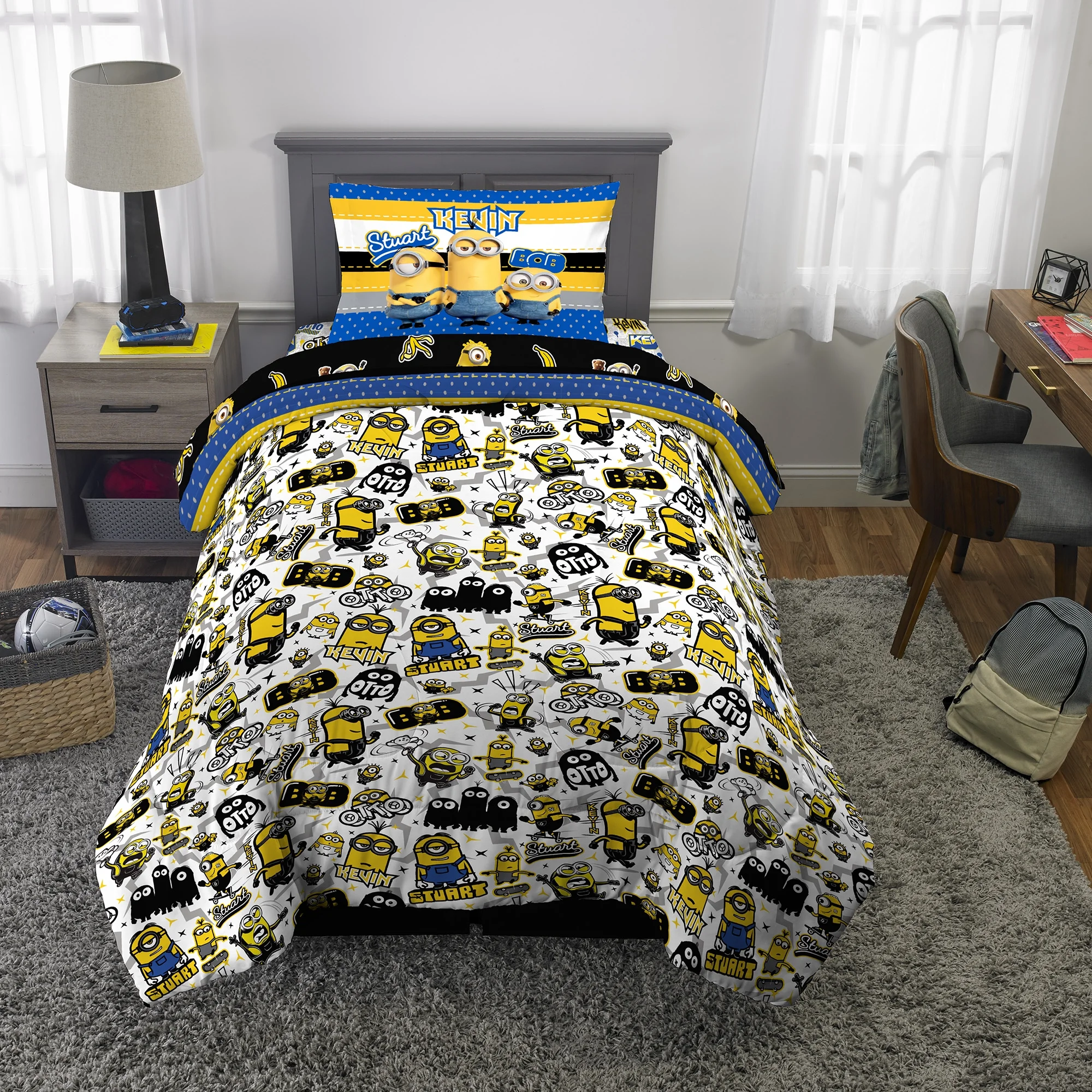 Minions Kids Comforter and Sham, 2-Piece Set, Twin/Full, Reversible, Blue and Yellow