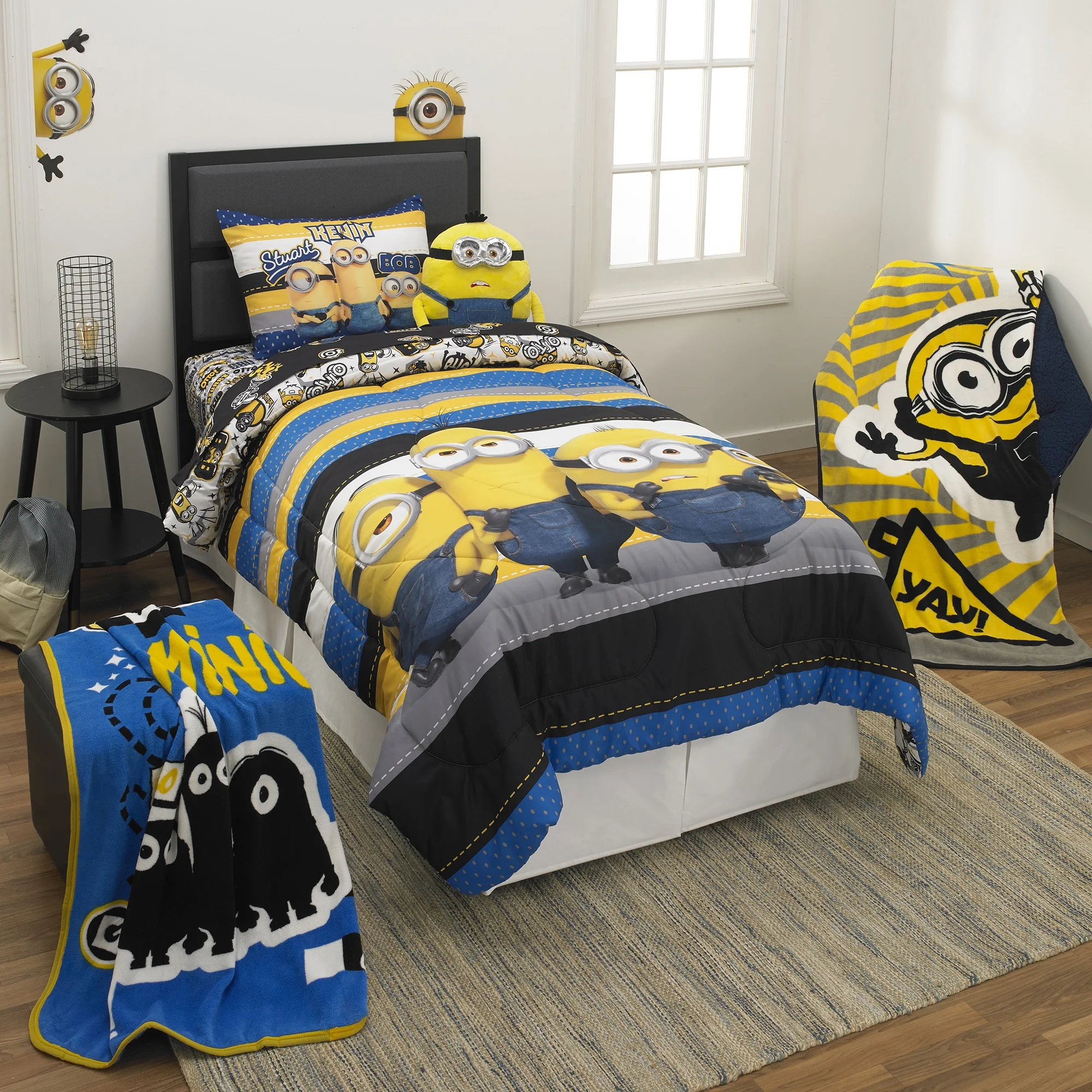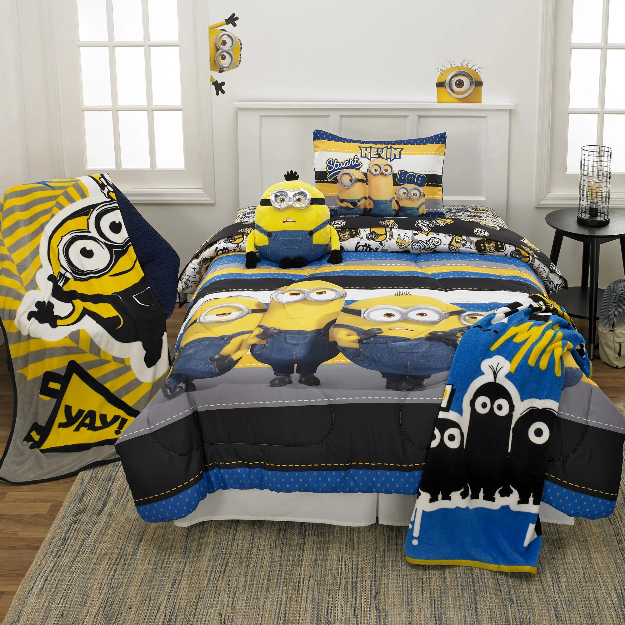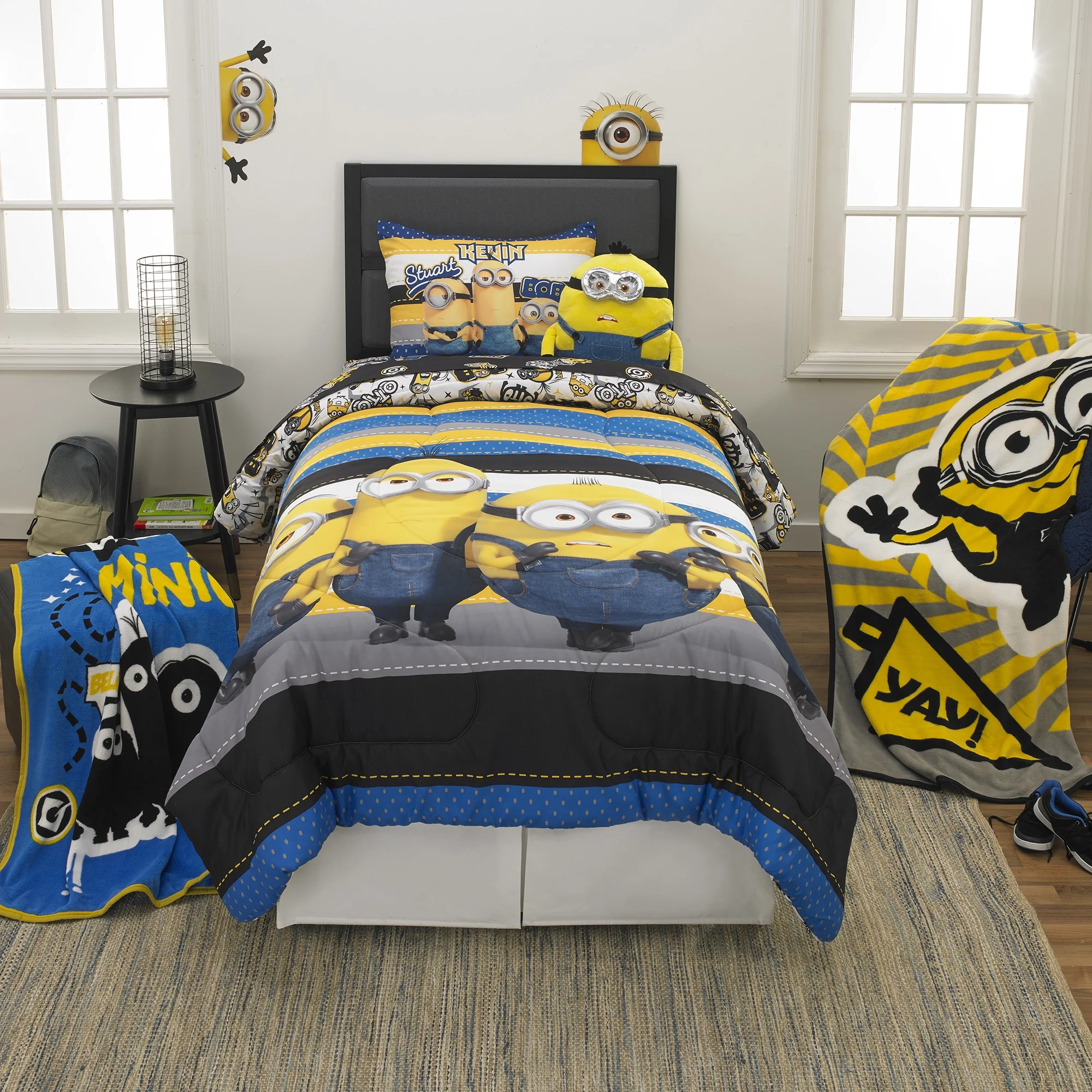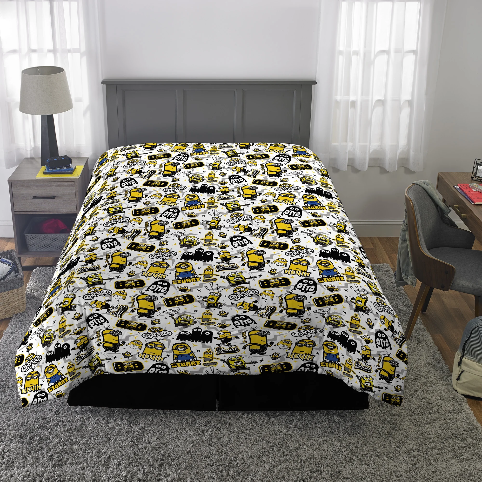 Minions Kids Comforter and Sham, 2-Piece Set, Twin/Full, Reversible, Blue and Yellow