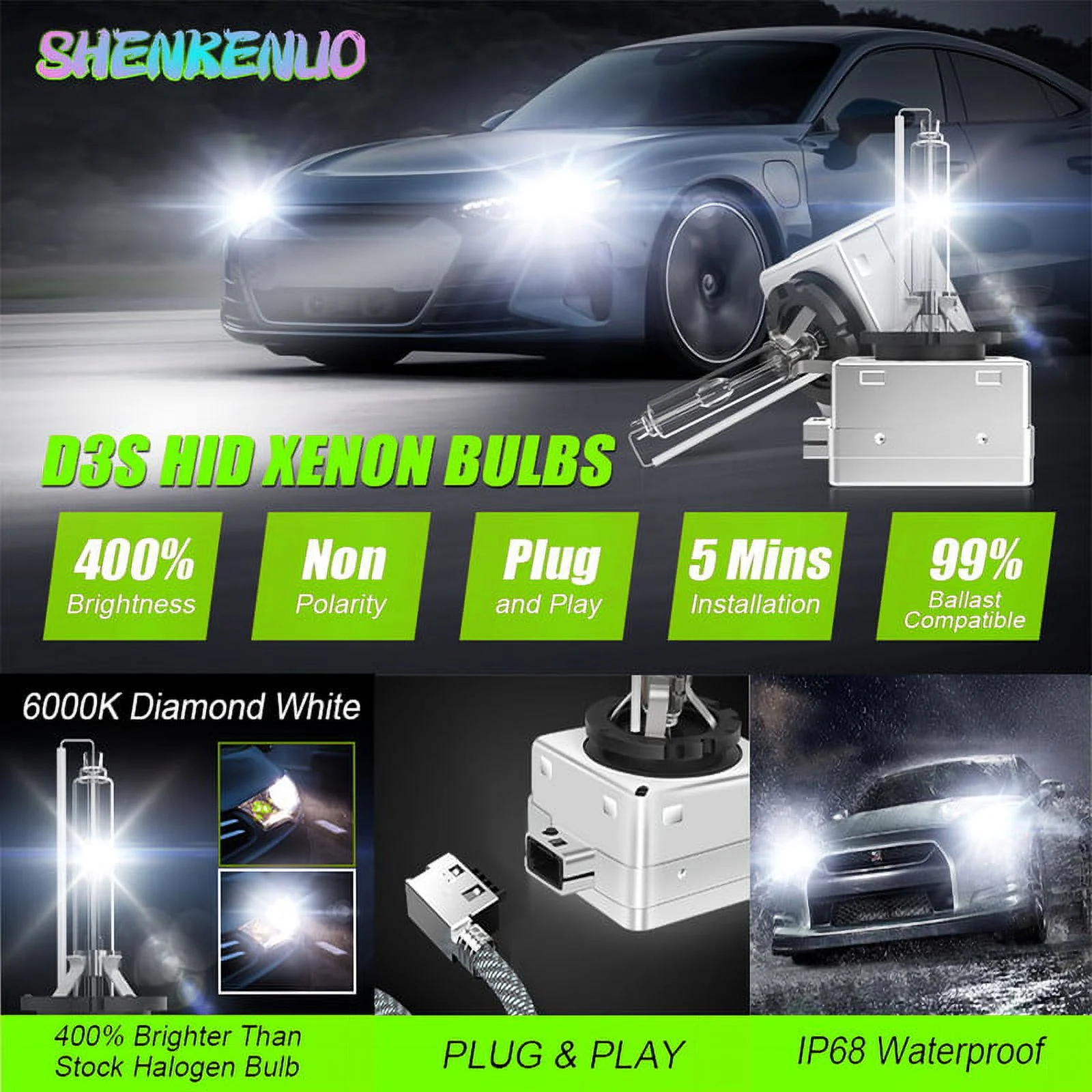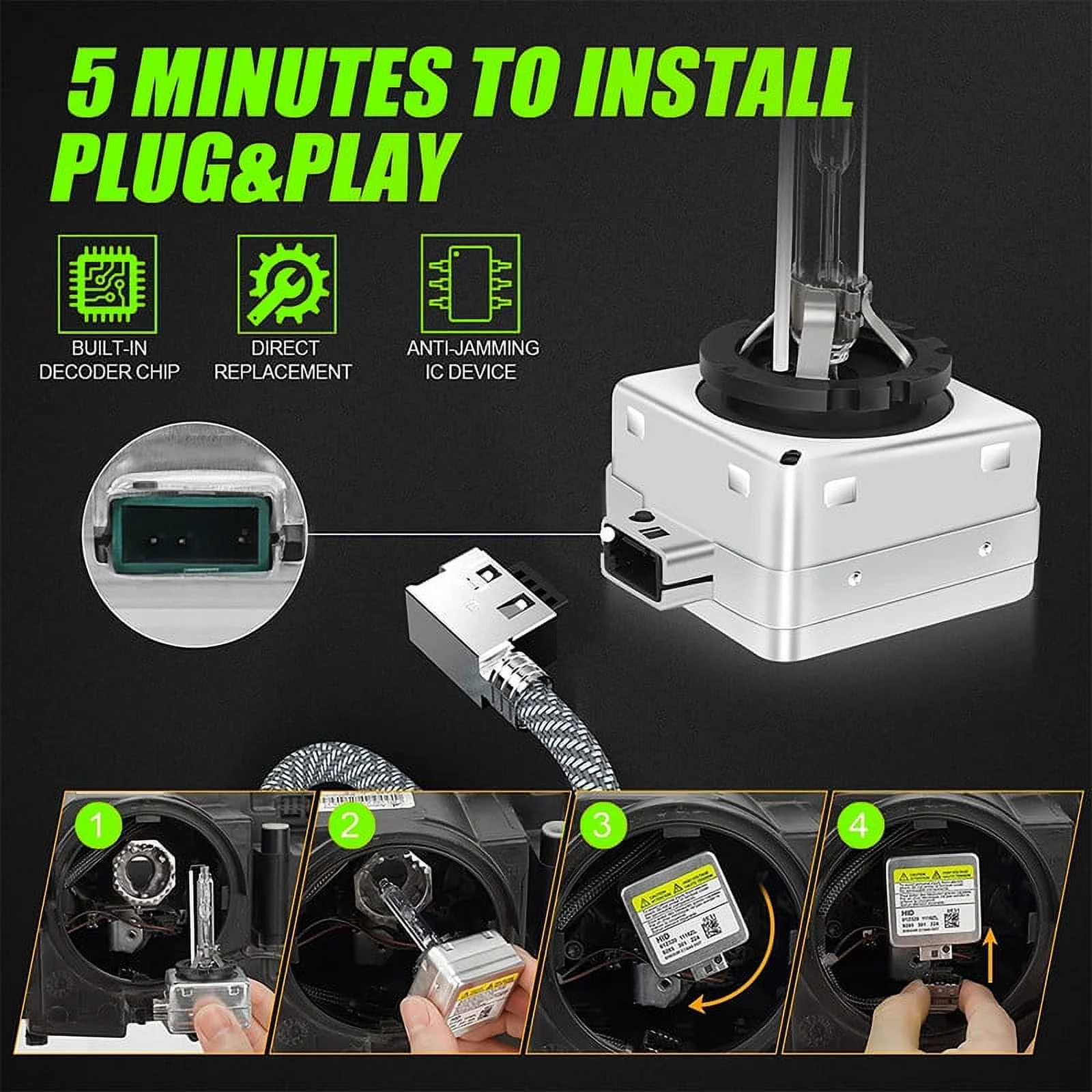D3S HID Headlight Xenon Bulbs for DODGE CHALLENGER 2015-2020 High/Low Beam 6000K White,2pcs