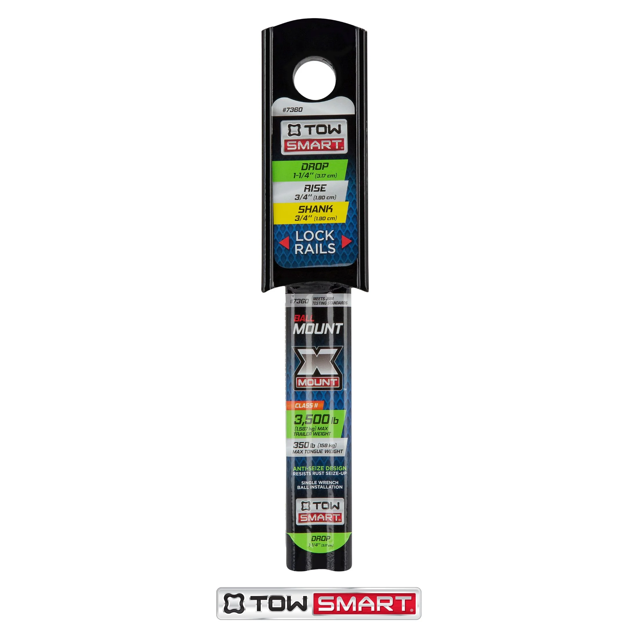 TowSmart Ball Towing X Mount, Class II, 1.25in Drop, 3/4in Rise, 3/4in Shank, 7360, 3500lb, 1 Each