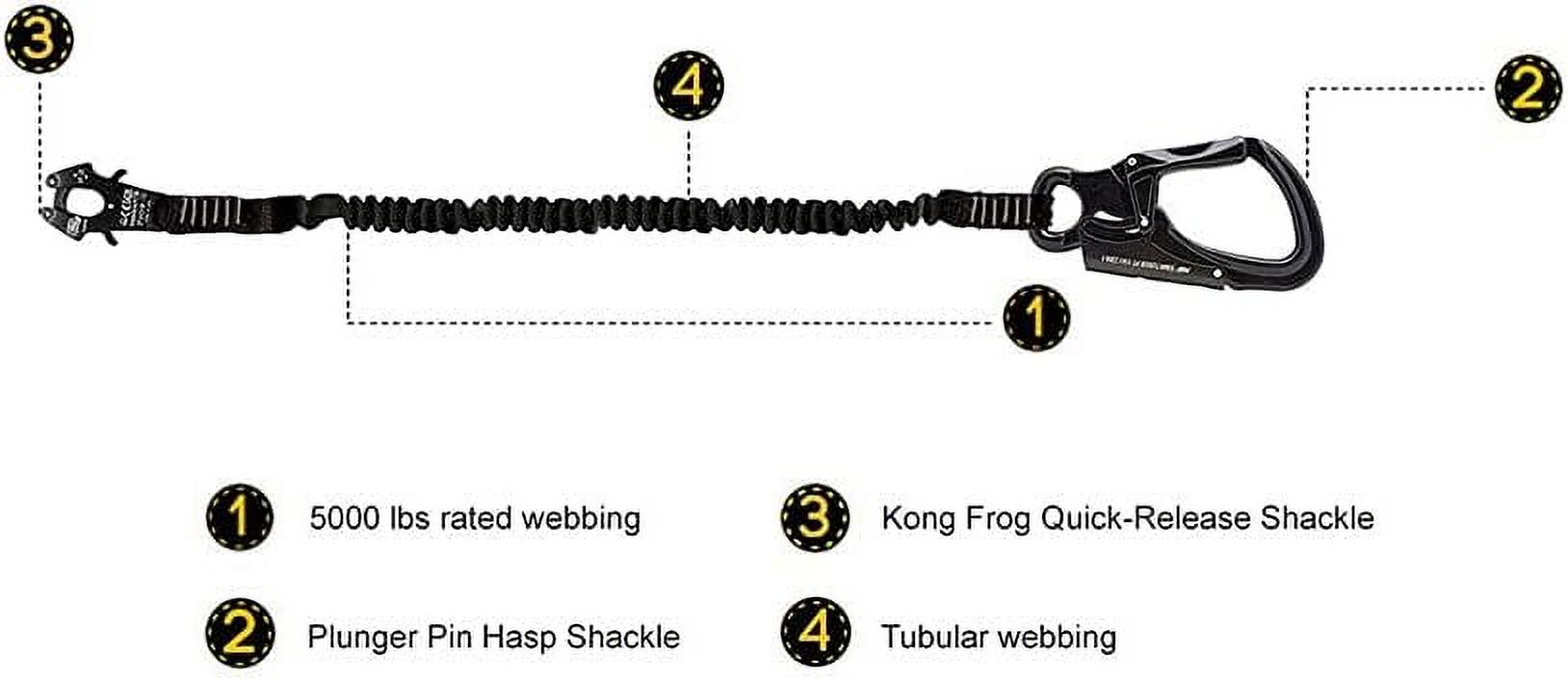 Proglide Military Police Helo Lanyard - 2Ft Elastic Bungee With Kong Frog Shackle Snap Hook, 23 - Black, 24 Inches