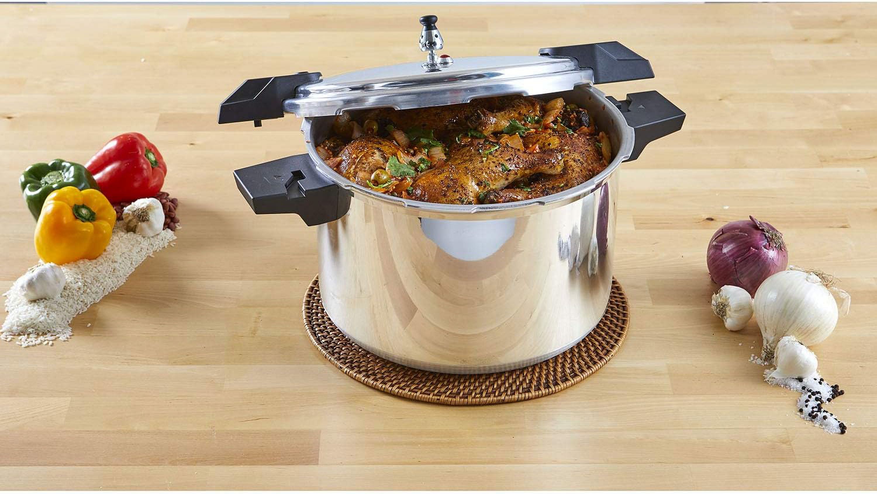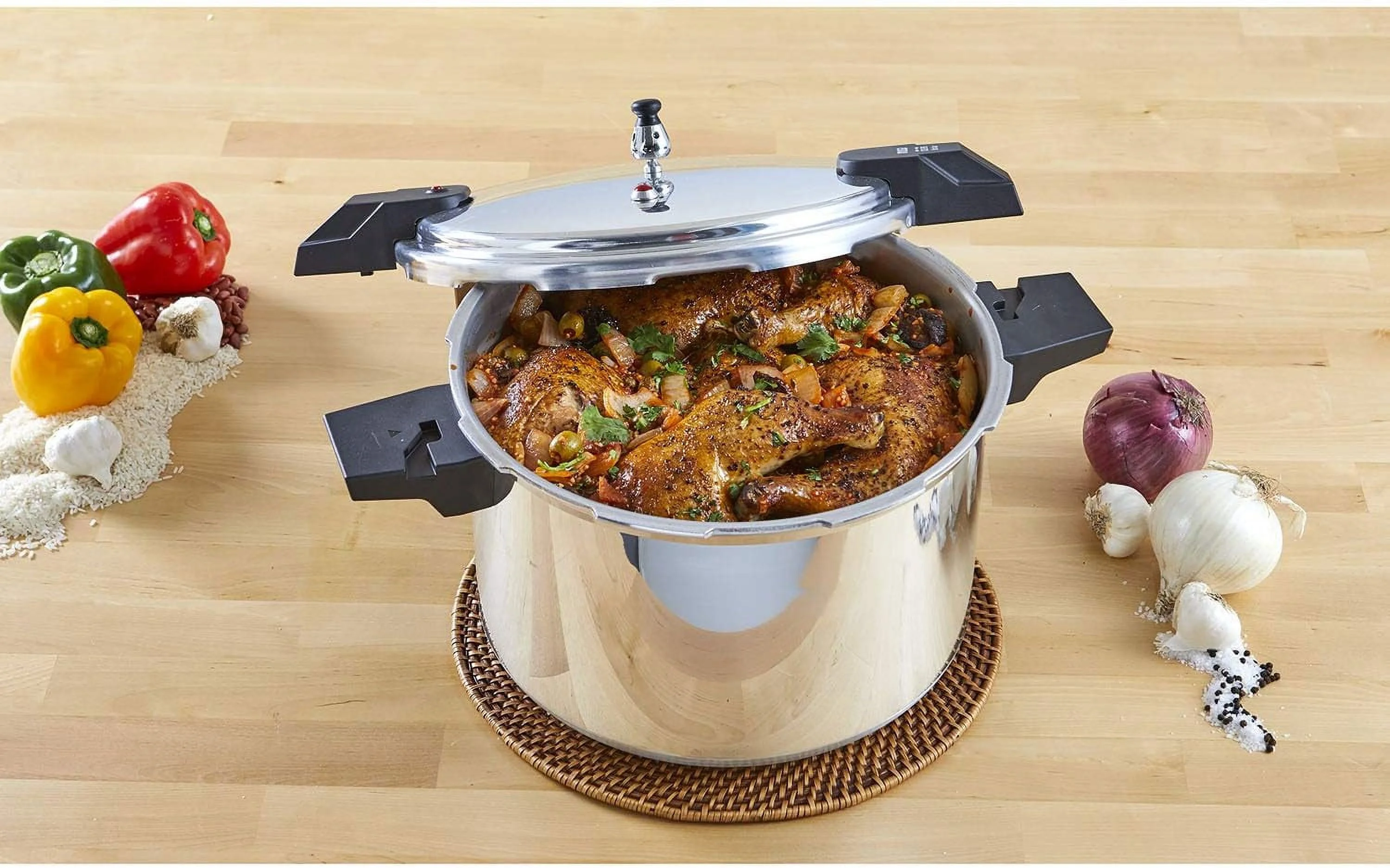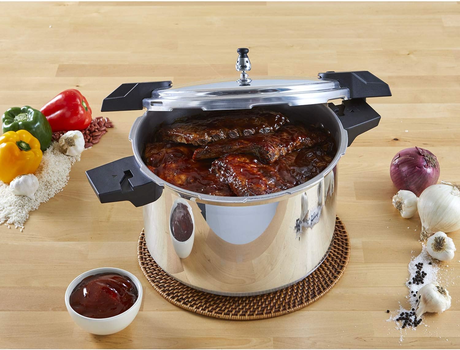 16Qt Jumbo Stovetop Pressure Cooker With Regulator And Side Handles, Silver