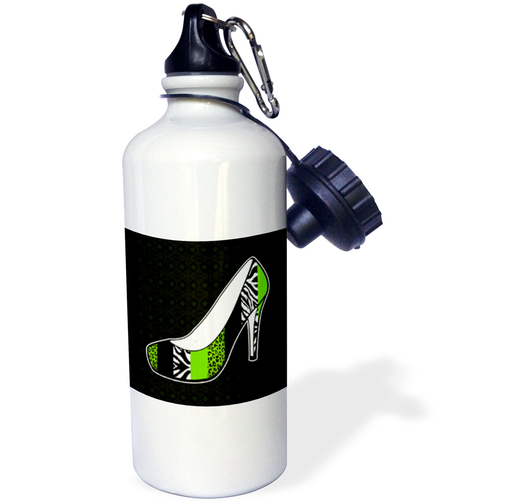 3dRose I Love Shoes - Animal Print High Heel Shoe - Green Cheetah and Zebra, Sports Water Bottle, 21oz