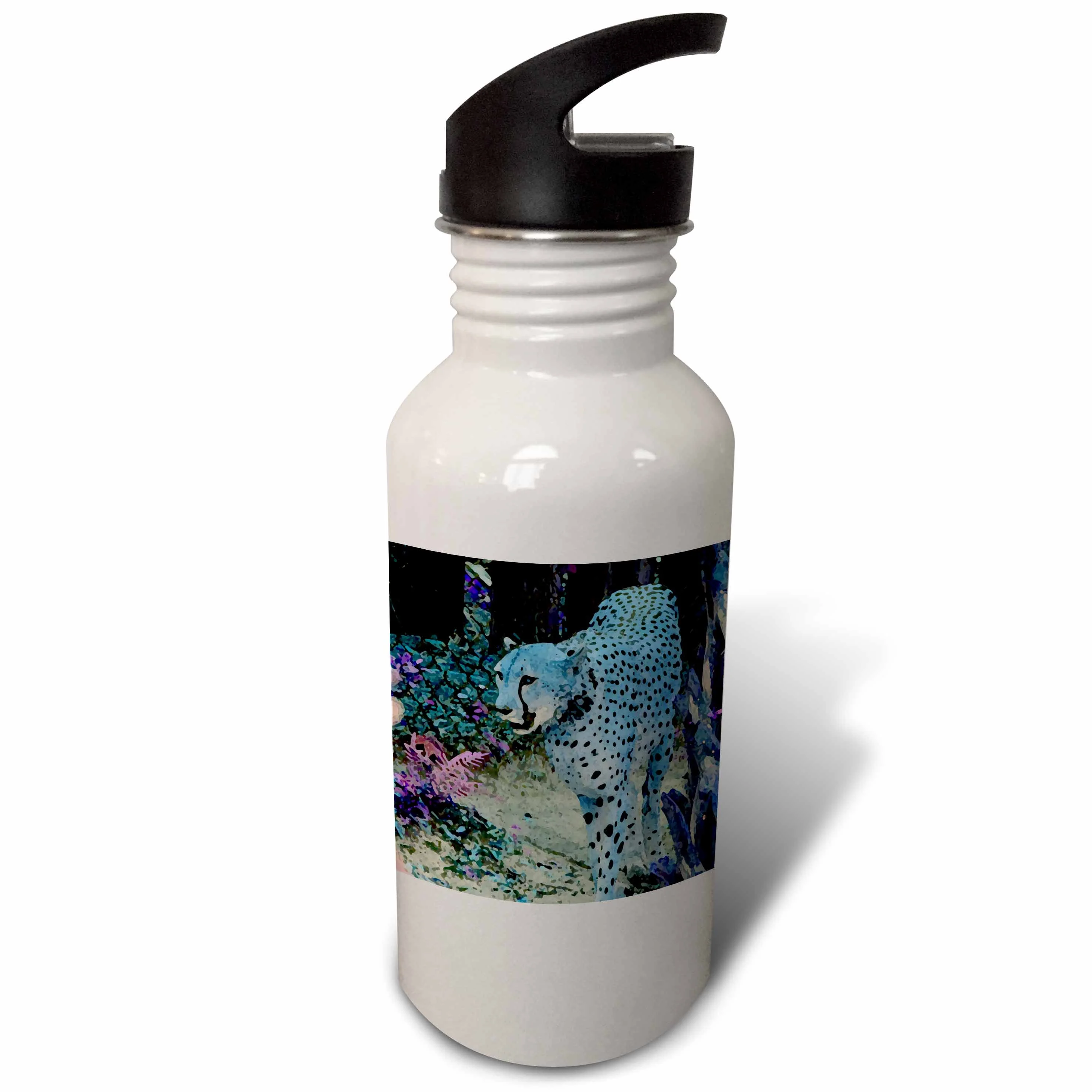 Cheetah Painting Blue Hue Cat Walking 21 oz Sports Water Bottle wb-215962-1
