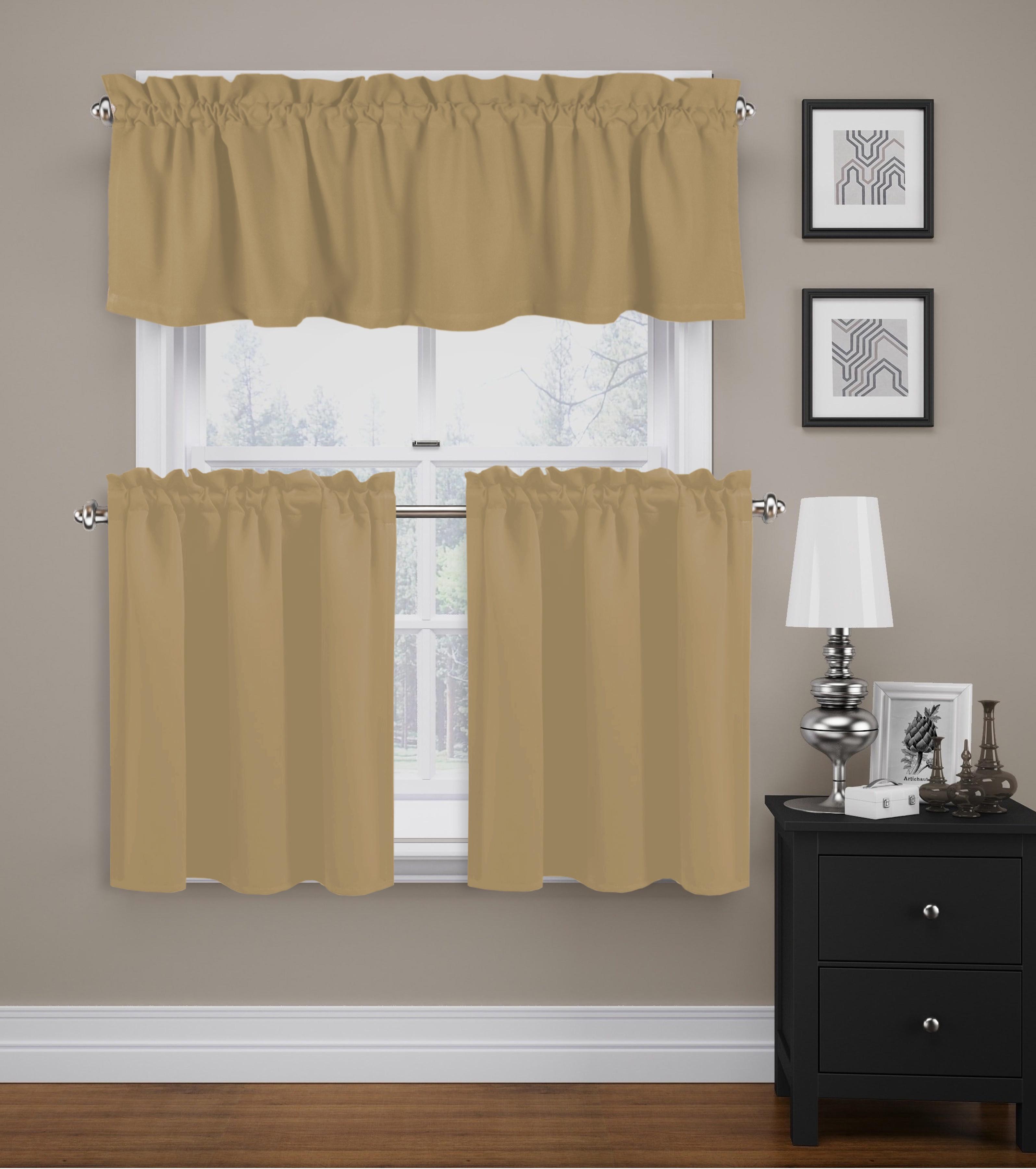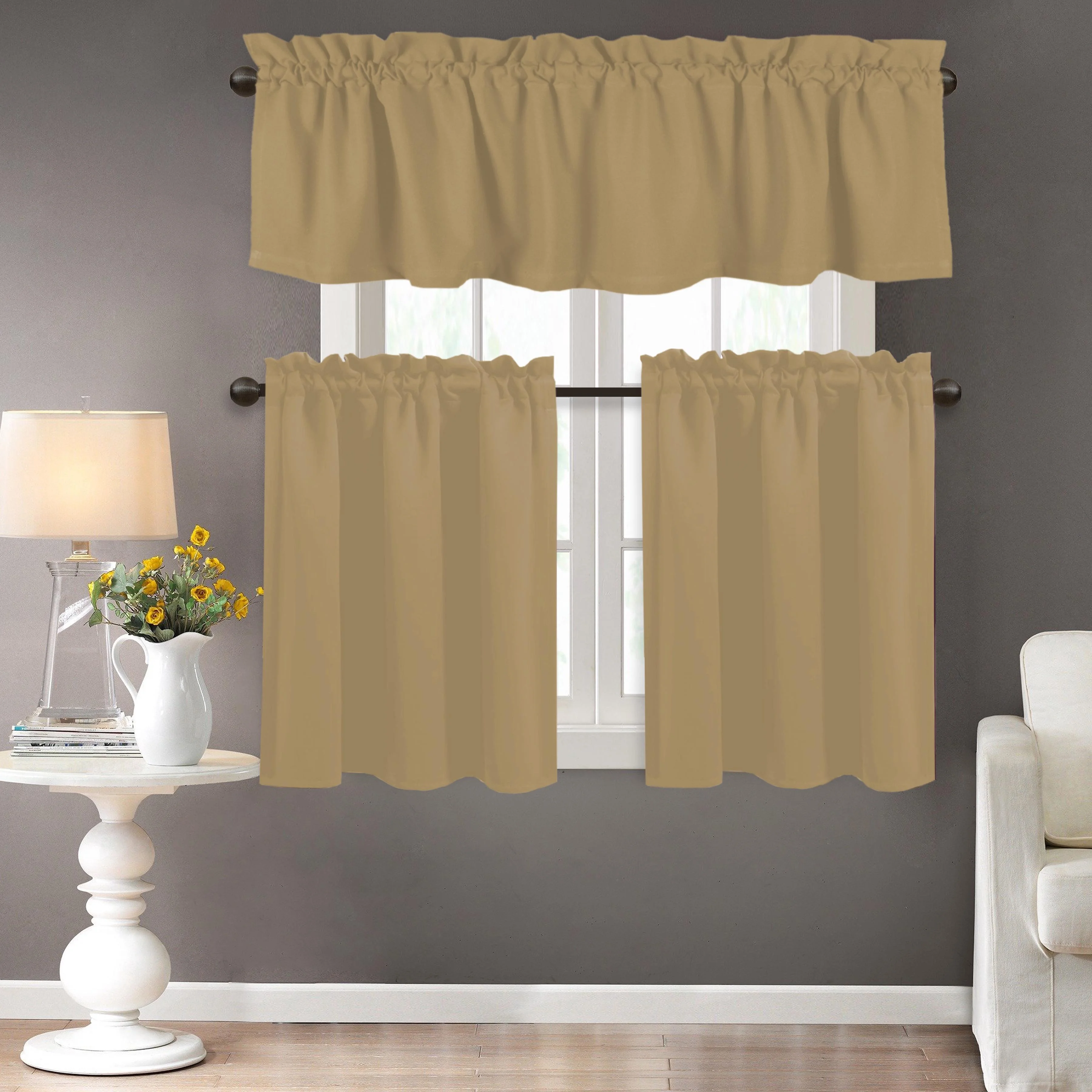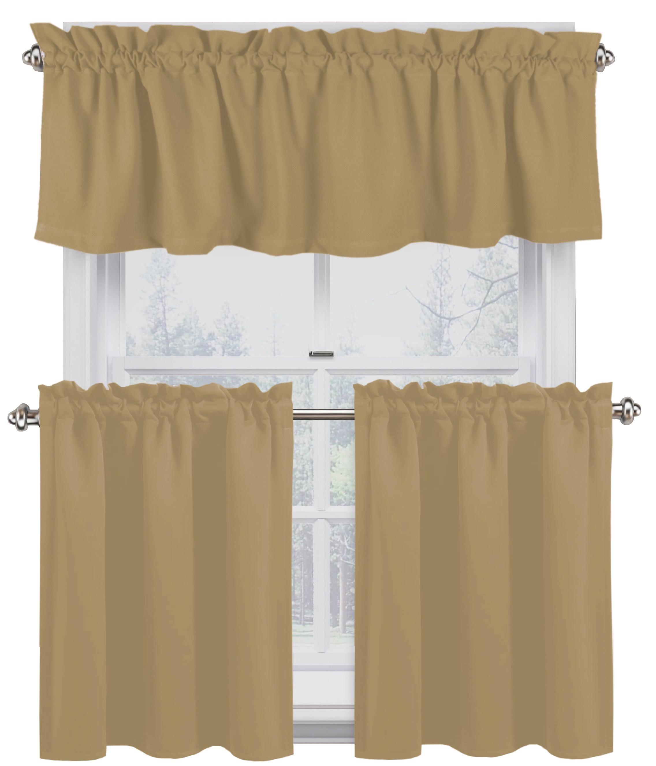 Native Fab Kitchen Window Curtain Tiers Valance Set 100% Cotton - Rod Pocket Style 3 Piece - Beige