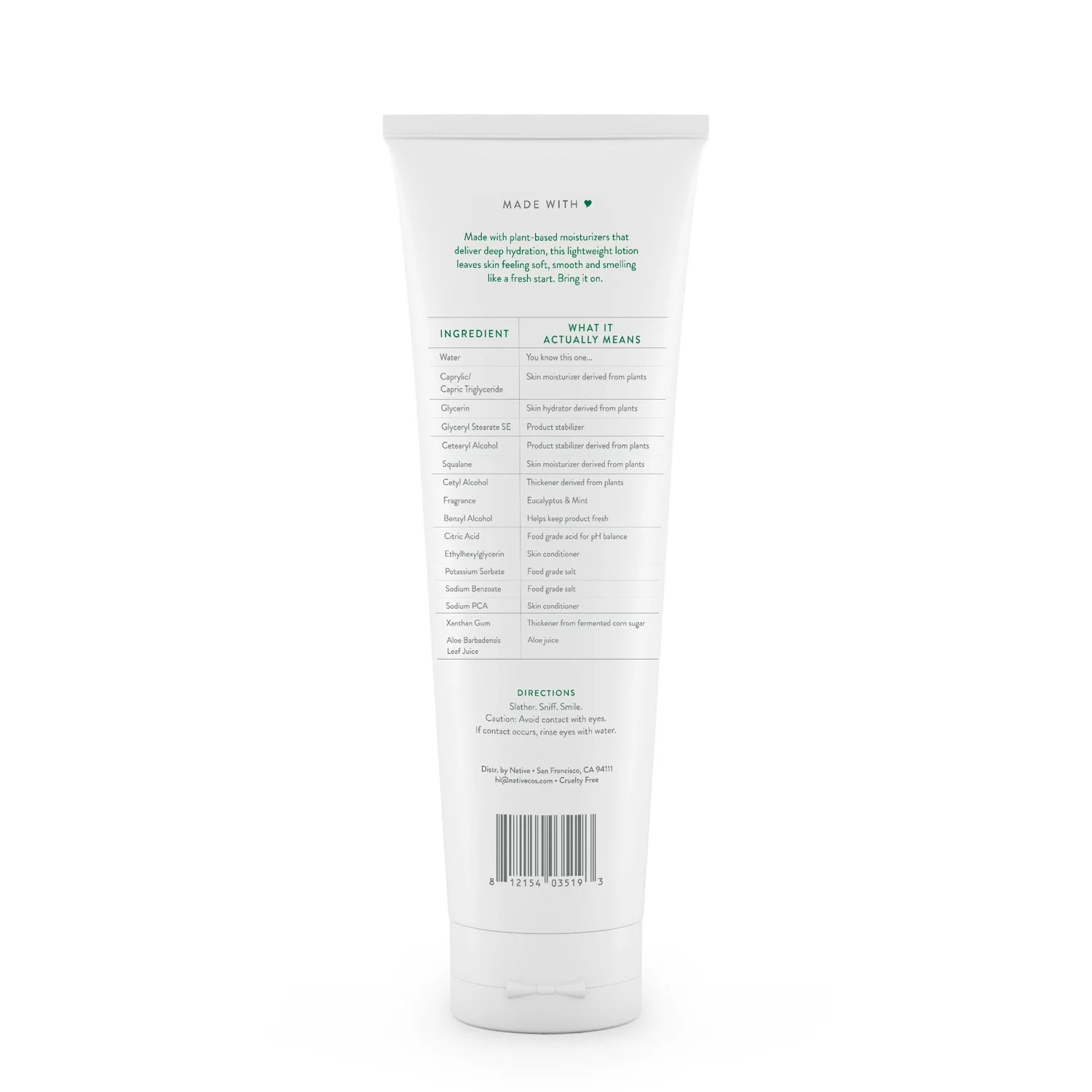 Native Natural Hand and Body Lotion, Eucalyptus & Mint, Paraben Free, Silicone Free 12 oz