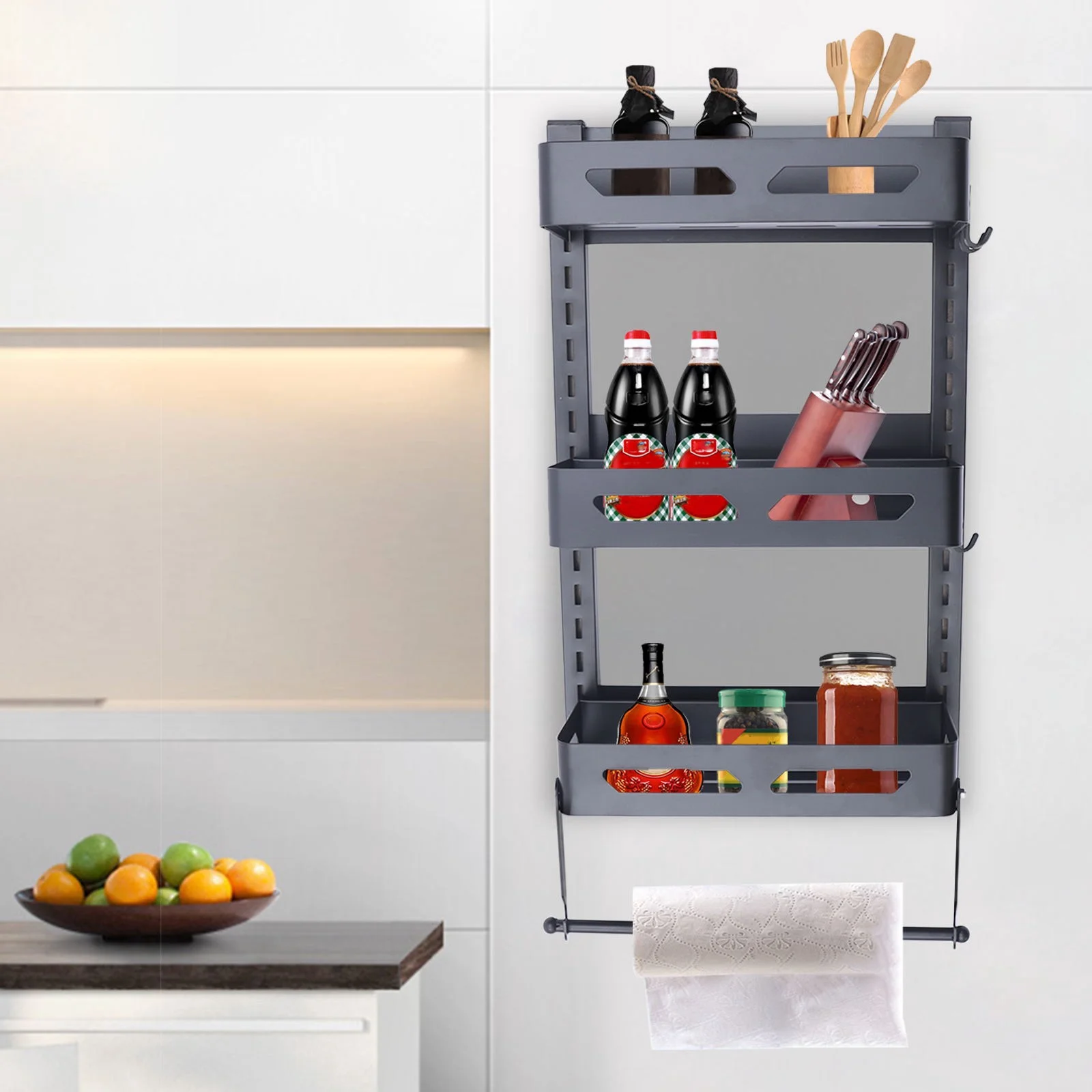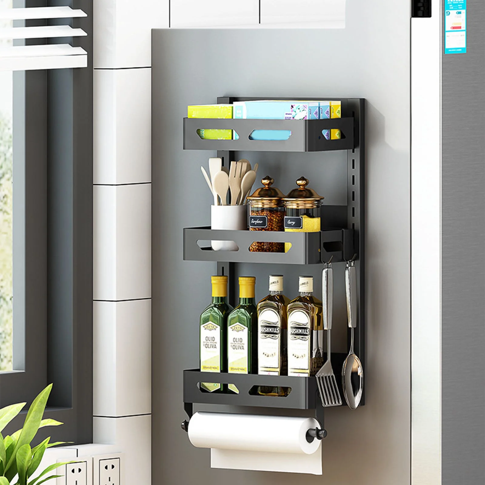 Wuzstar 3 Tier Refrigerator Storage Rack Magnet Adsorption Kitchen Fridge Organizer Holder W/ Hook
