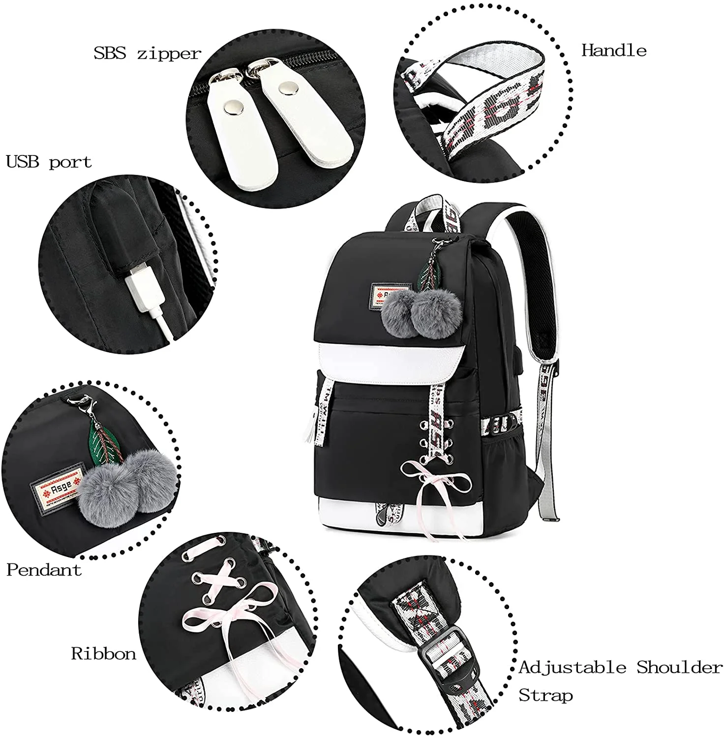Asge Backpack for Girls Kids Schoolbag Children Bookbag Women Casual Daypack…