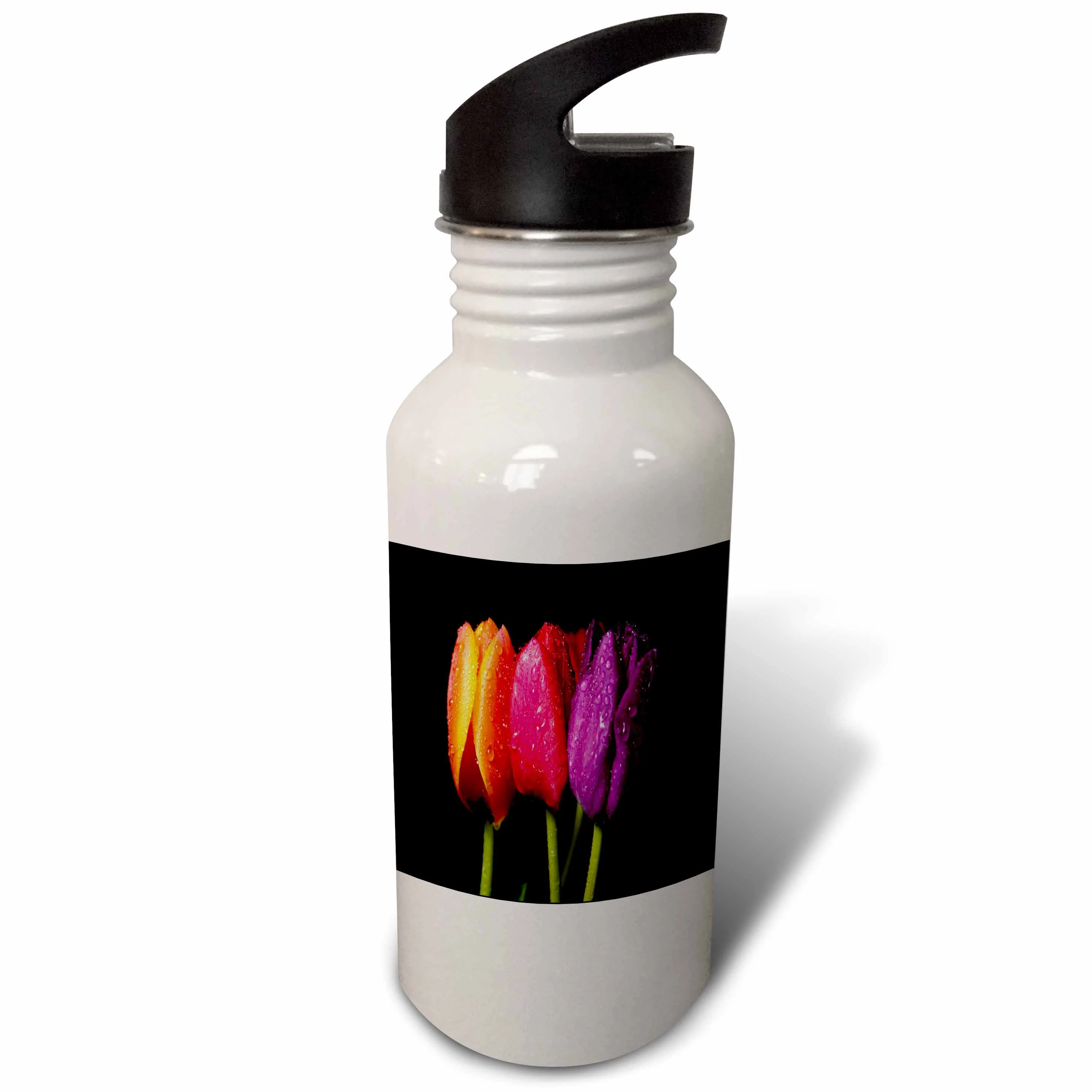 Orange Red n Purple Dew Covered Tulips 21 oz Sports Water Bottle wb-55226-1