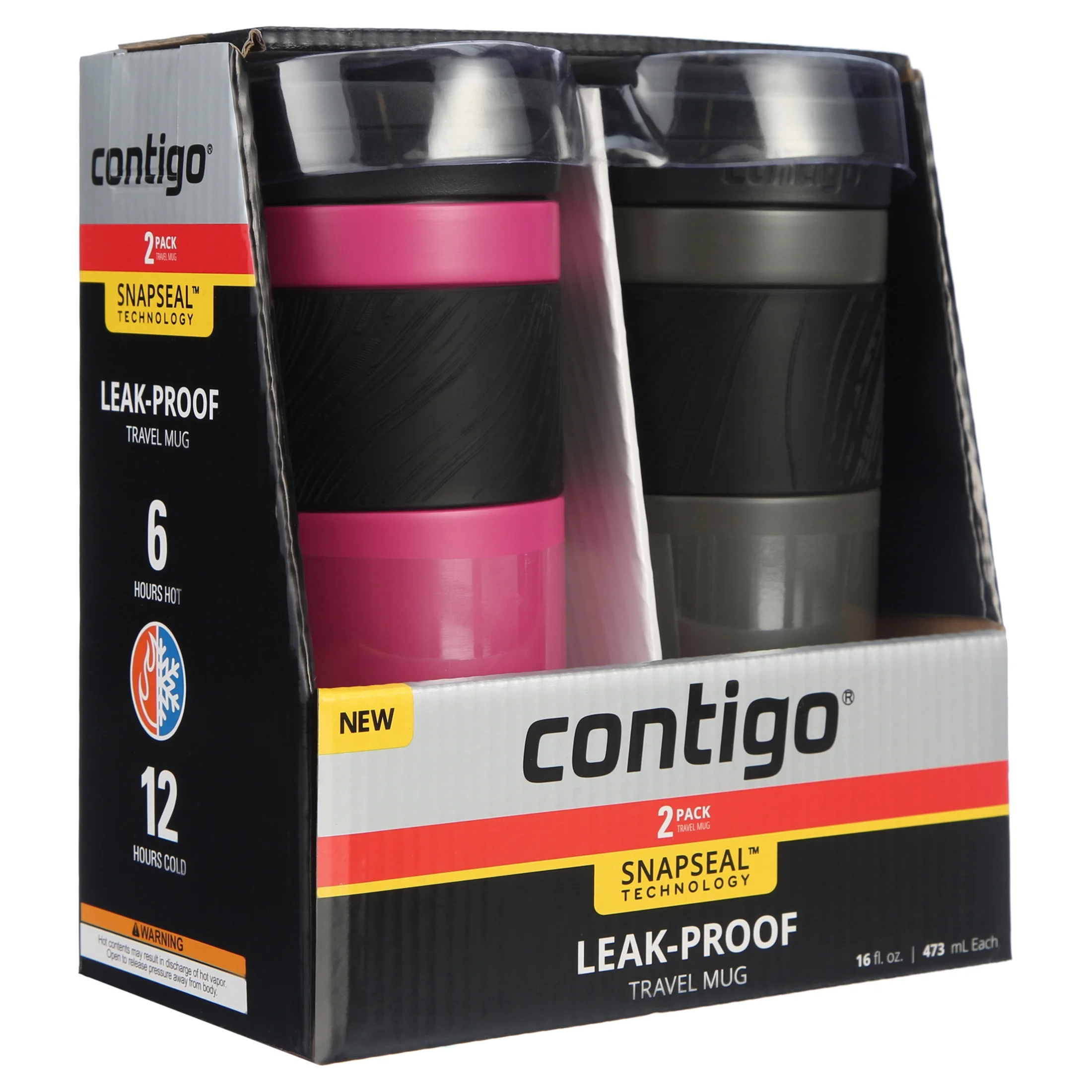 Contigo SnapSeal Insulated Stainless Steel Travel Mug, 16 oz., Sake & Dragonfruit, 2-Pack