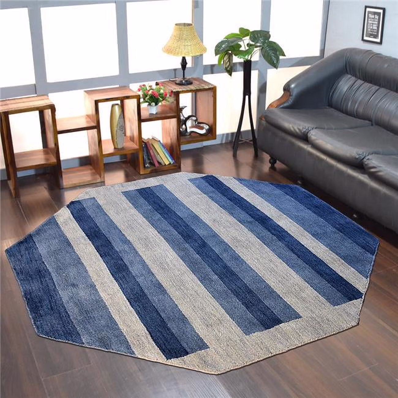Get My Rugs 8 x 8 ft. Hand Knotted Loom Wool Contemporary Octagon Area Rug - Blue & Light Blue