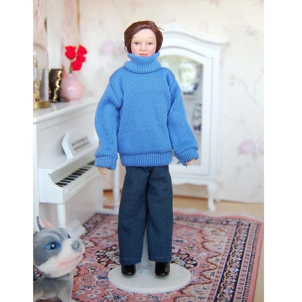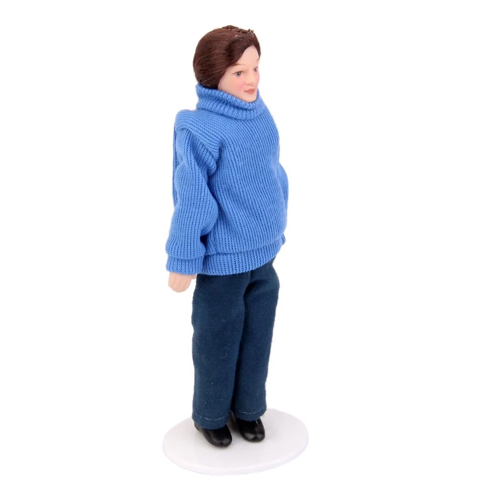 1/12 Dollhouse Miniature Porcelain Doll Pretty Modern Man in Sweater People Figures Model Display