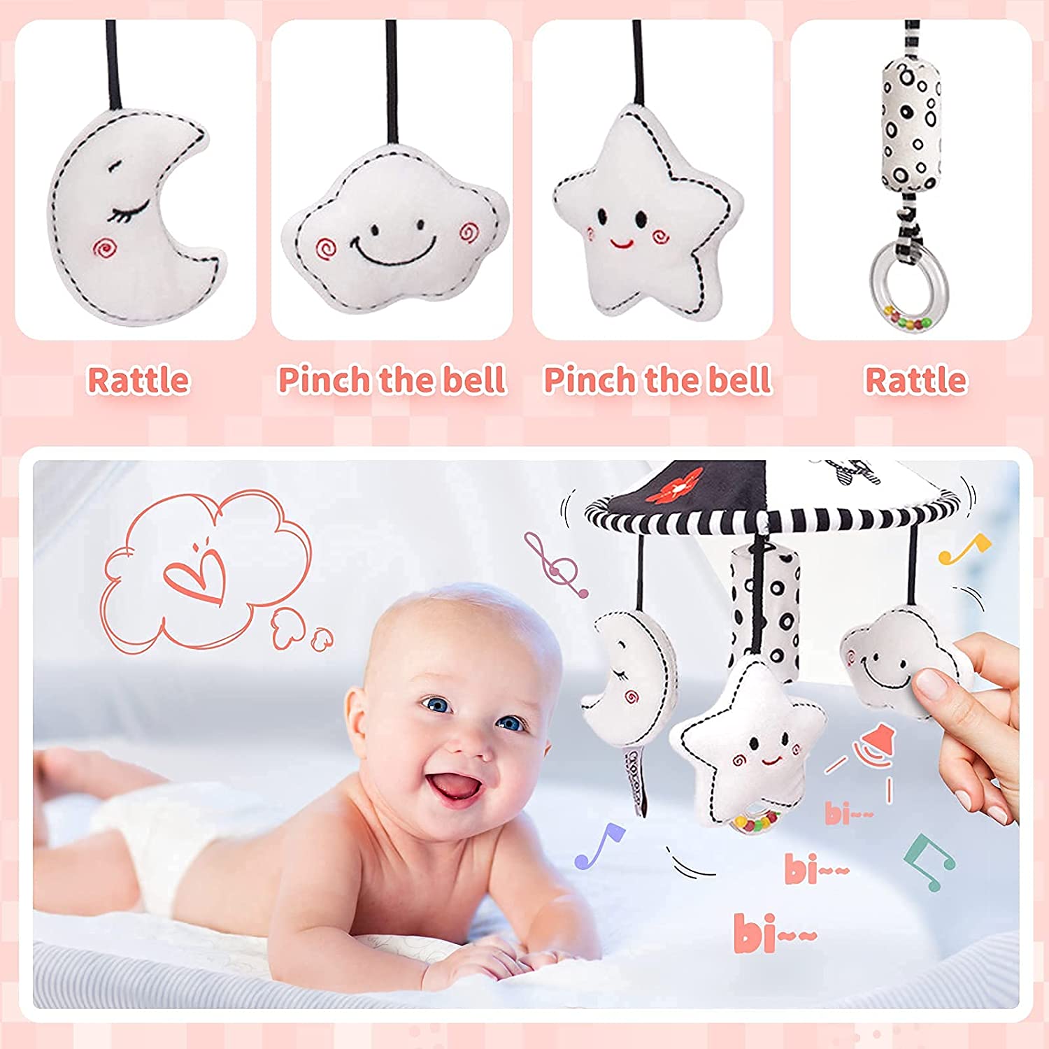 Car Seat Toys for Babies,Hanging Baby Toys,Clip on Stroller Toy for 3 6 to 18 Months,Hanging Rattle Toys for Babies,Hanging Toys for Baby Gym, Newborn Baby Toys 0 3 Months,Infant Toys