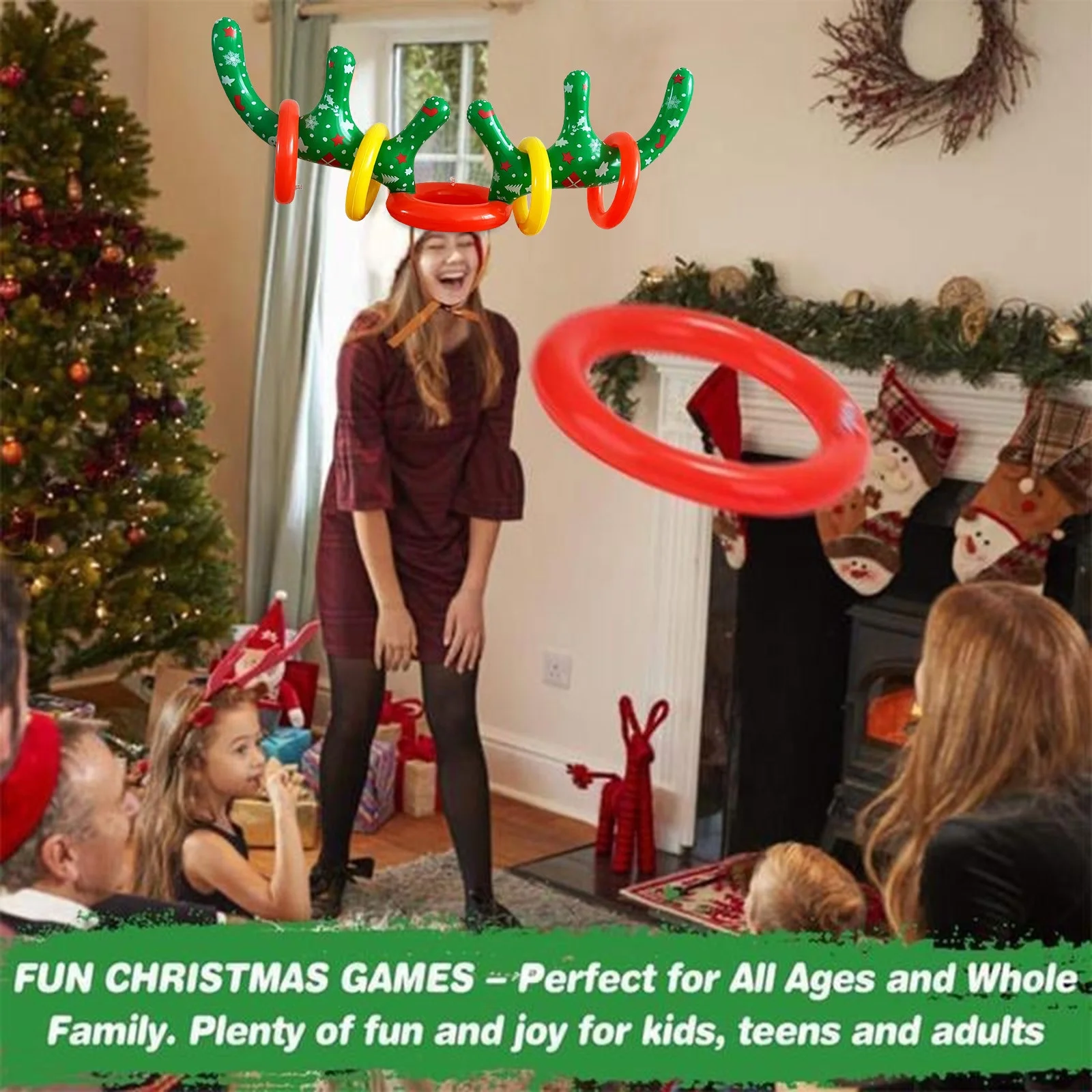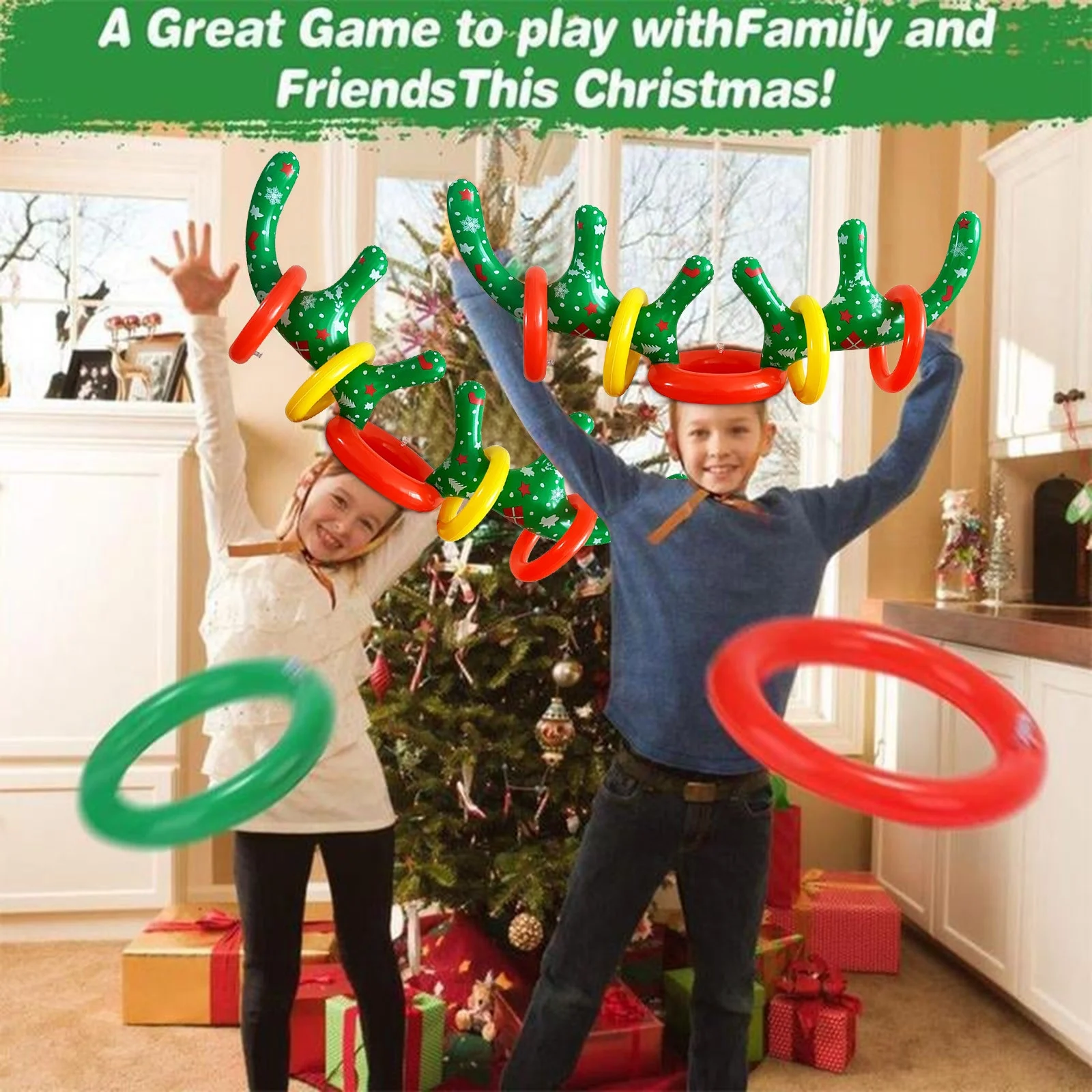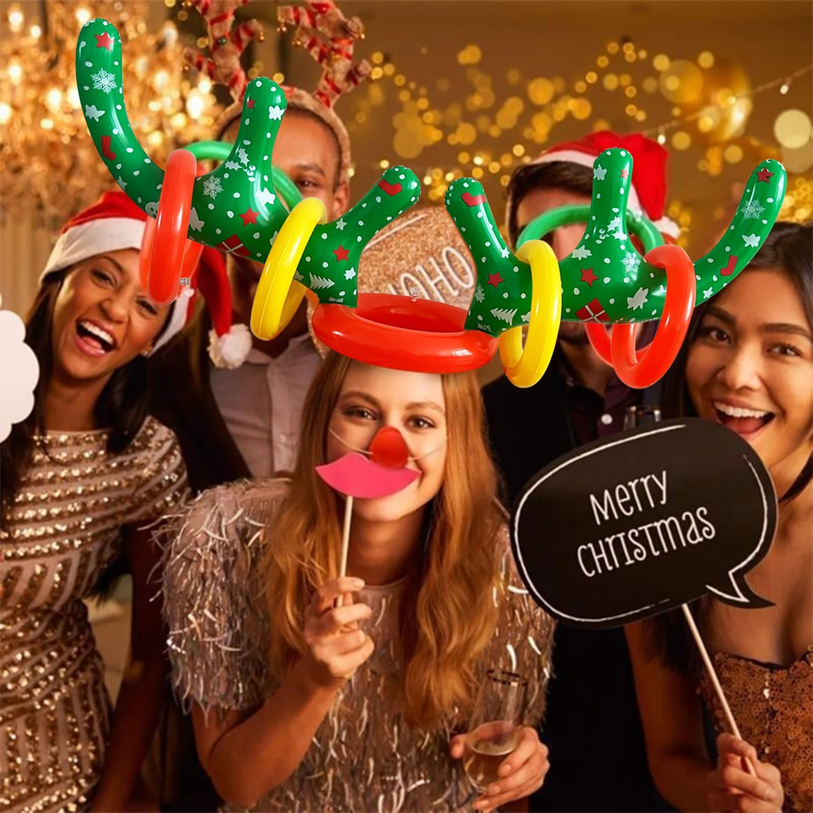 COFEST Home Decoration,Christmas Inflatable Reindeer Antler Ring Toss Game,2023 Christmas Games Ring Toss for Christmas Party Games,Color,