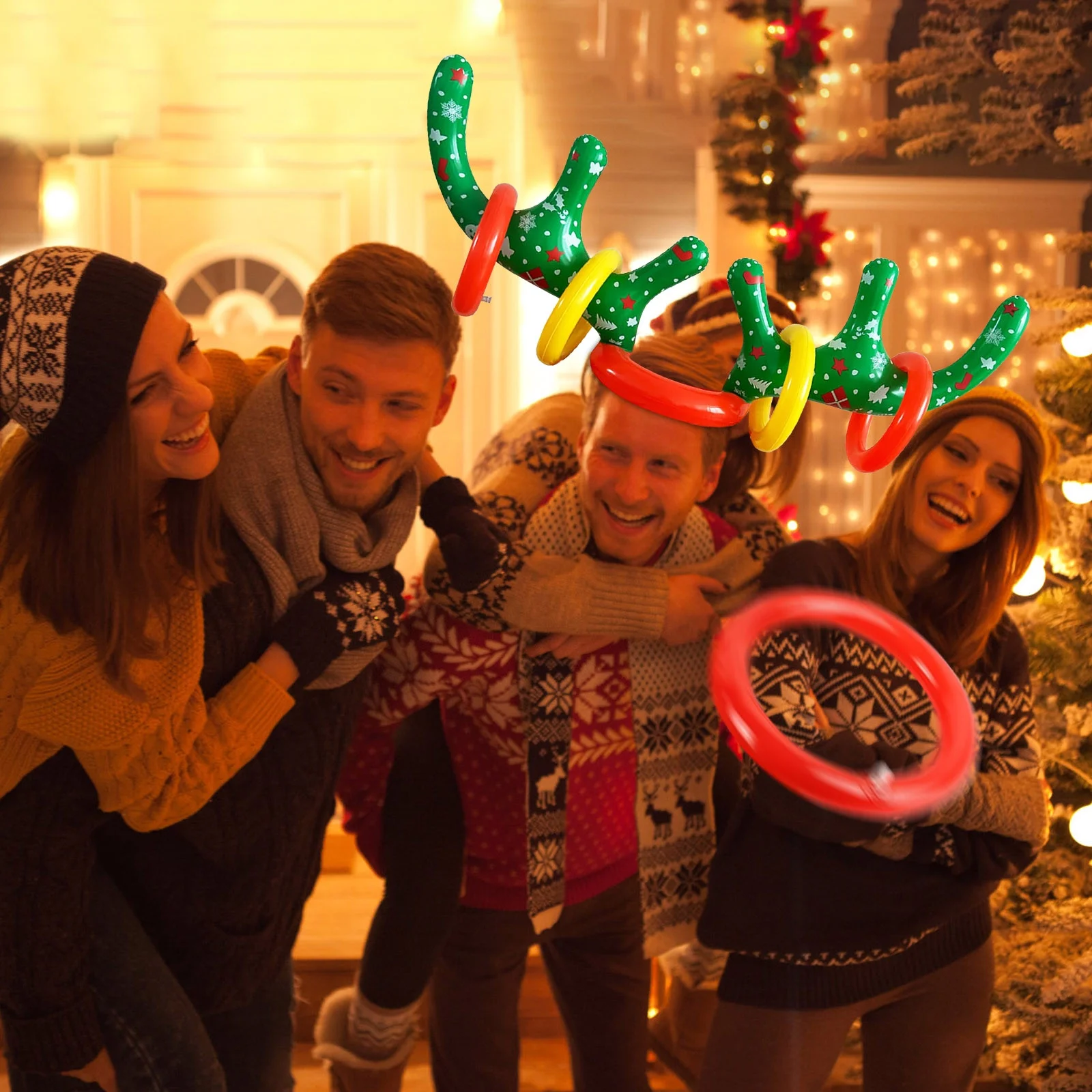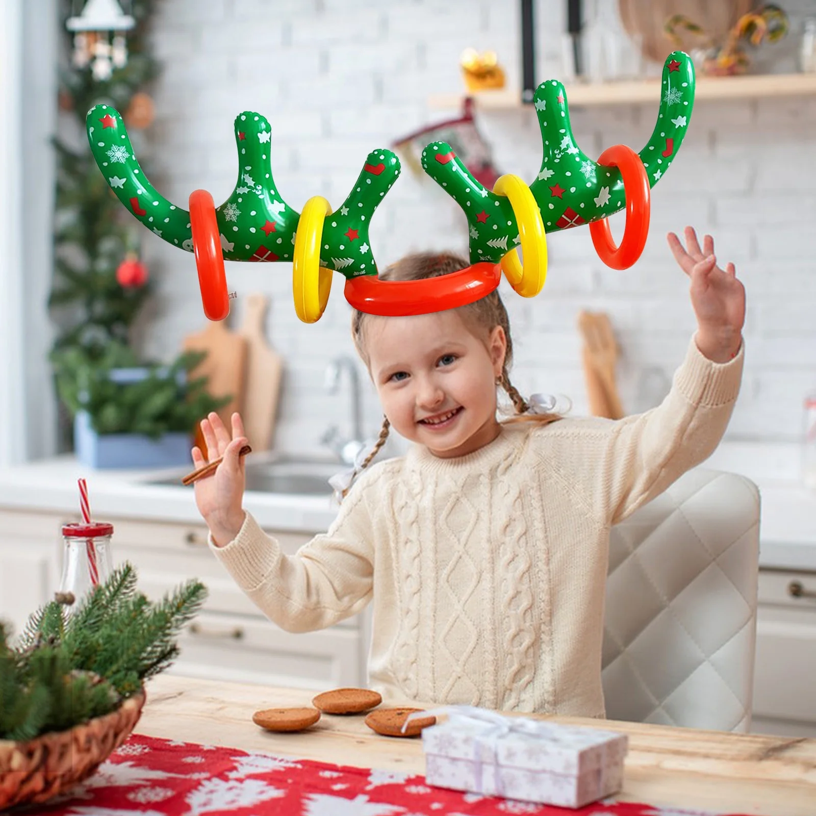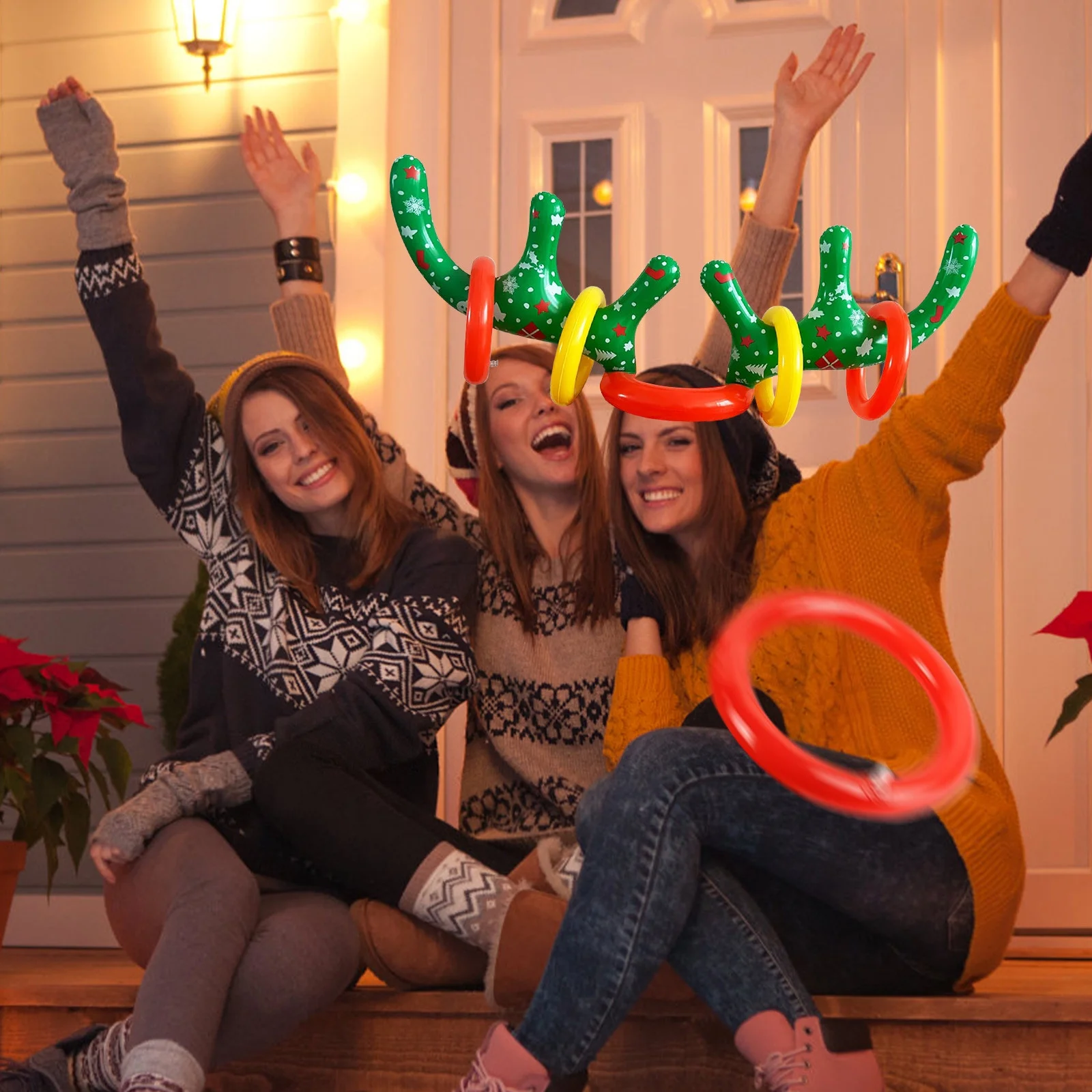 COFEST Home Decoration,Christmas Inflatable Reindeer Antler Ring Toss Game,2023 Christmas Games Ring Toss for Christmas Party Games,Color,