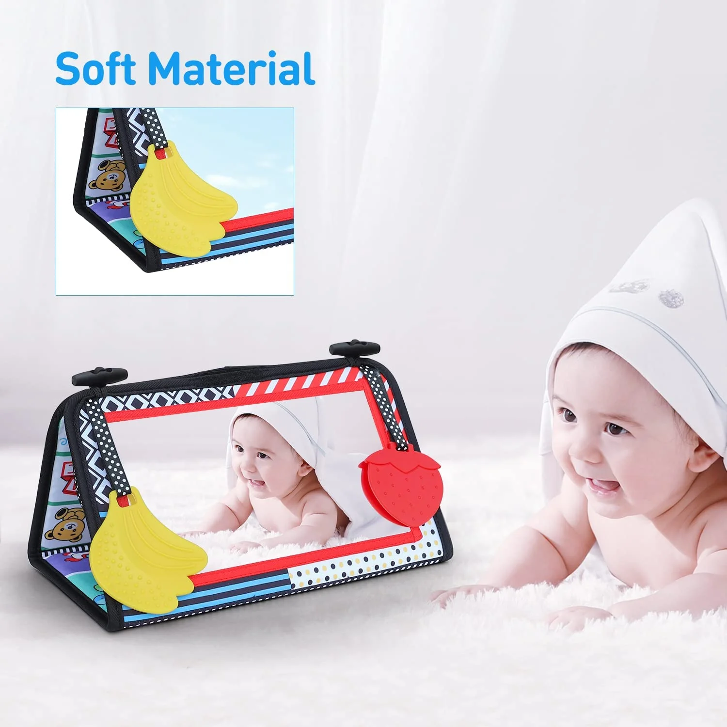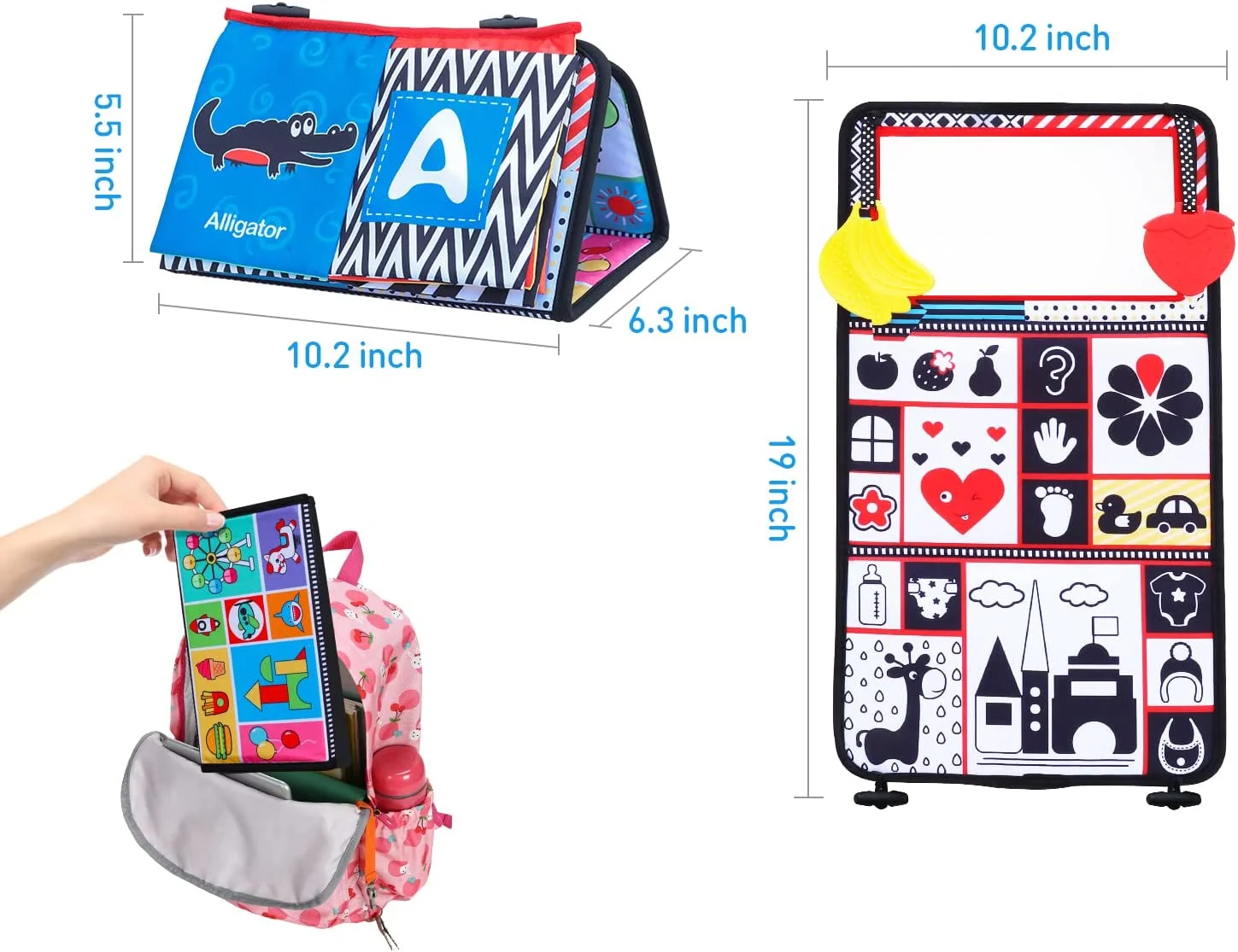 Tummy Time Mirror Toy for Babies with Cloth Book High Contrast Activity Developmental Baby Toys Gift for Newborn Infants 0 3 6 12 Months
