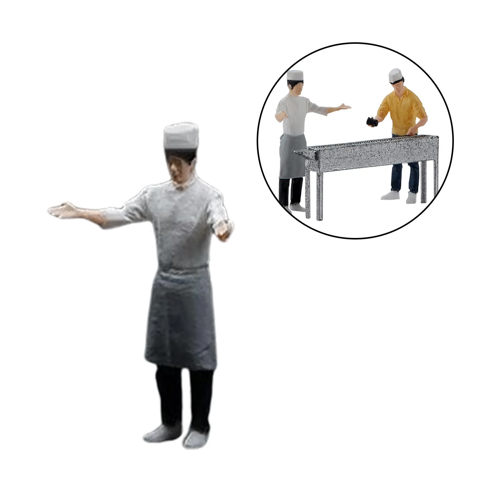 4Pcs Miniature Scene People Character Model Painted Figures for Indoor Dollhouse , BBQ Chef B