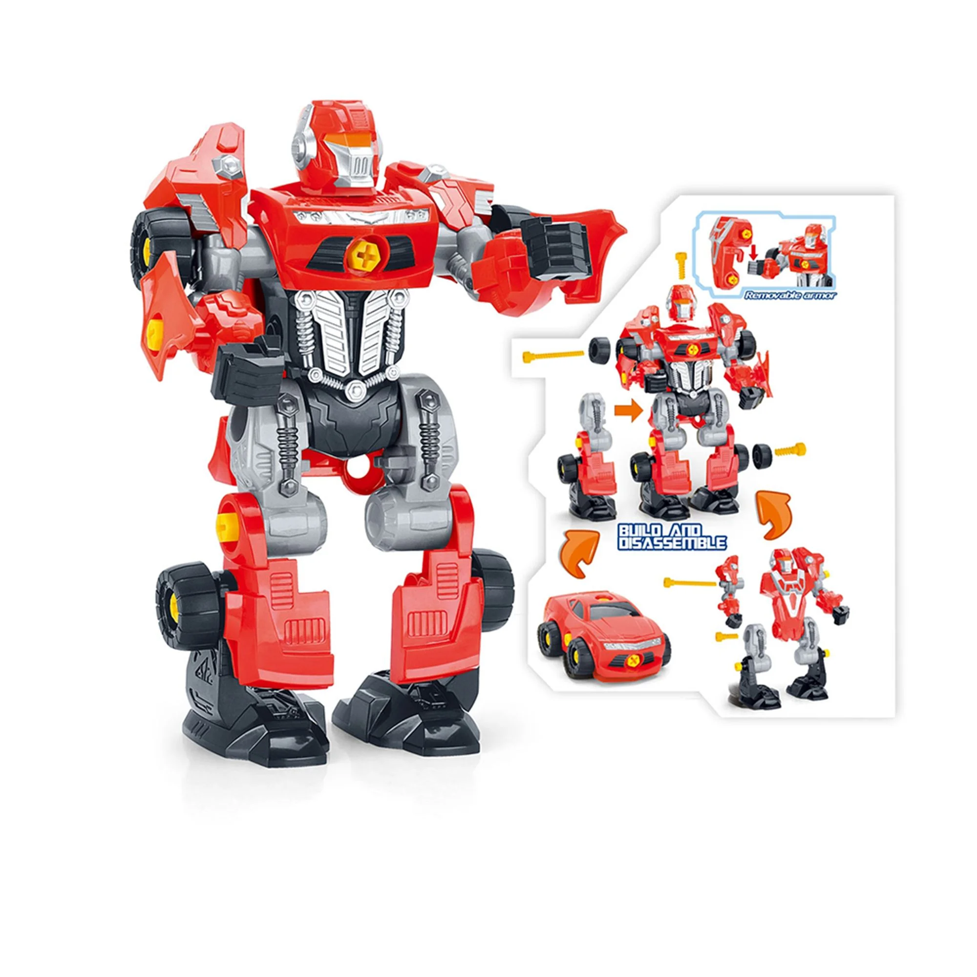 3-In-1 Toy Robot Playset with 42 Modification Pieces - Red