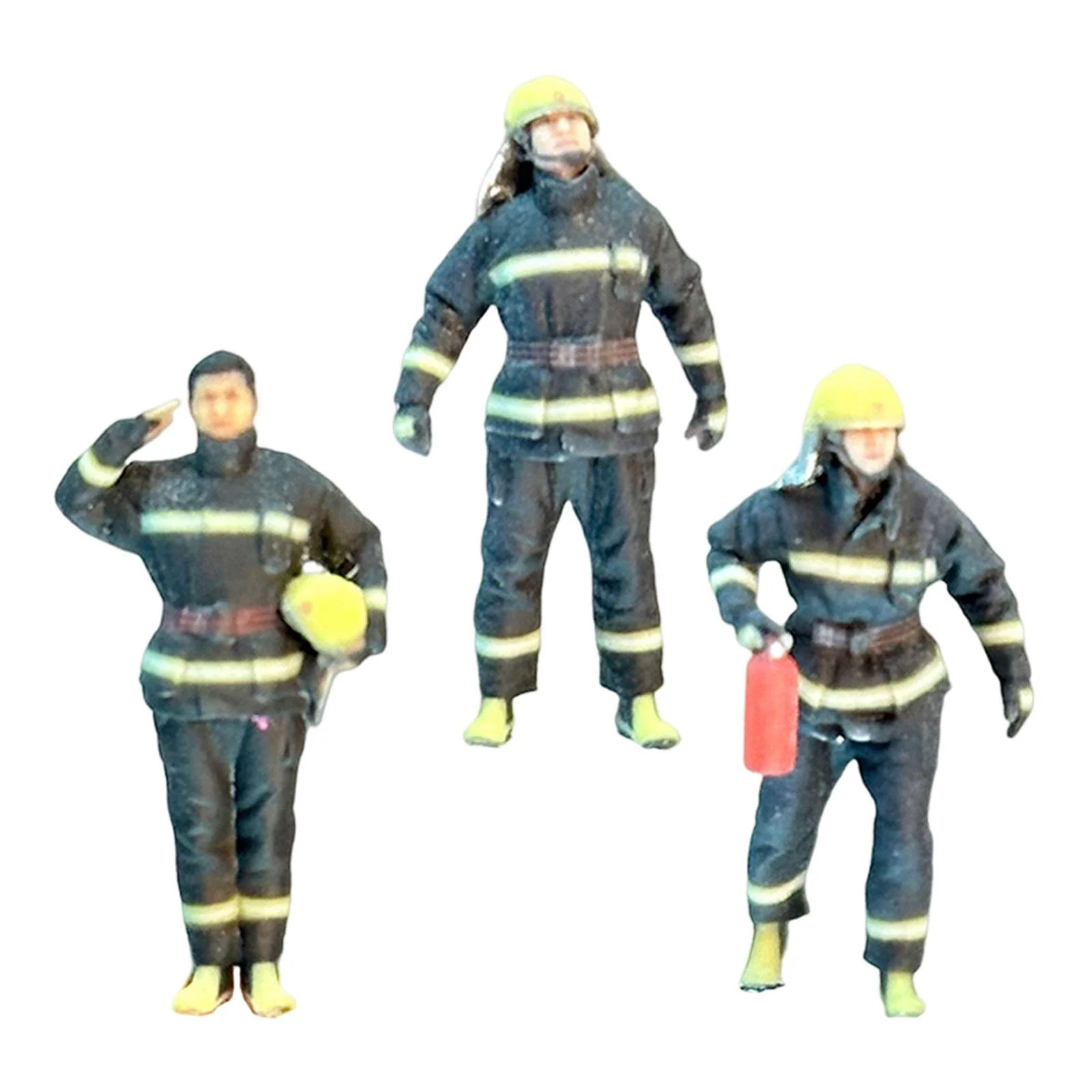 3 Pieces Firefighter Model Tiny People Model for Scenery Landscape Dollhouse 64th