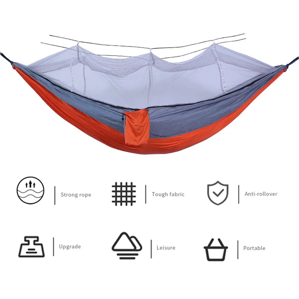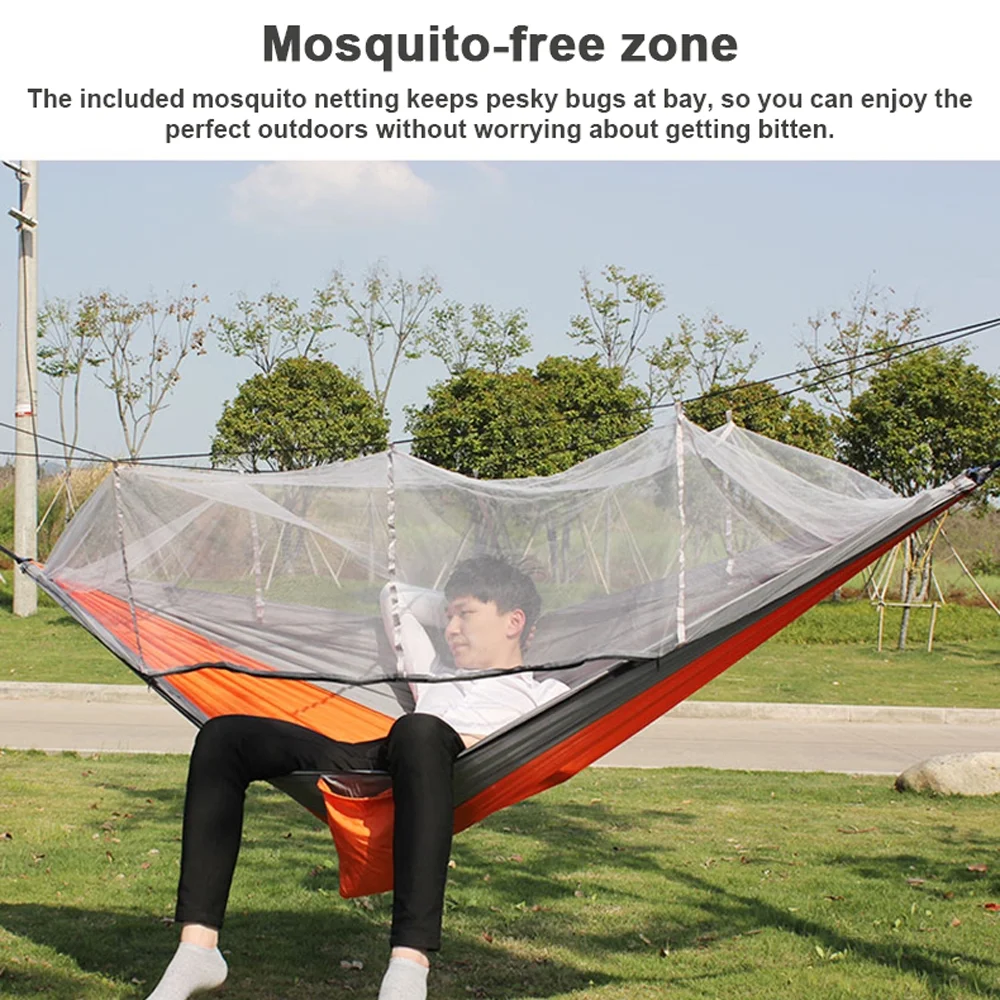 Lightweight Nylon Hammock with Mosquito Net Perfect for Camping and Hiking, Easy to Carry