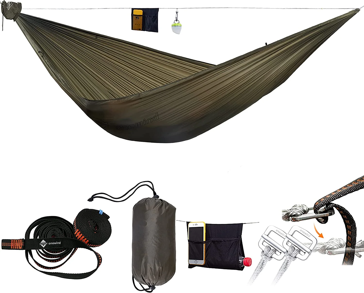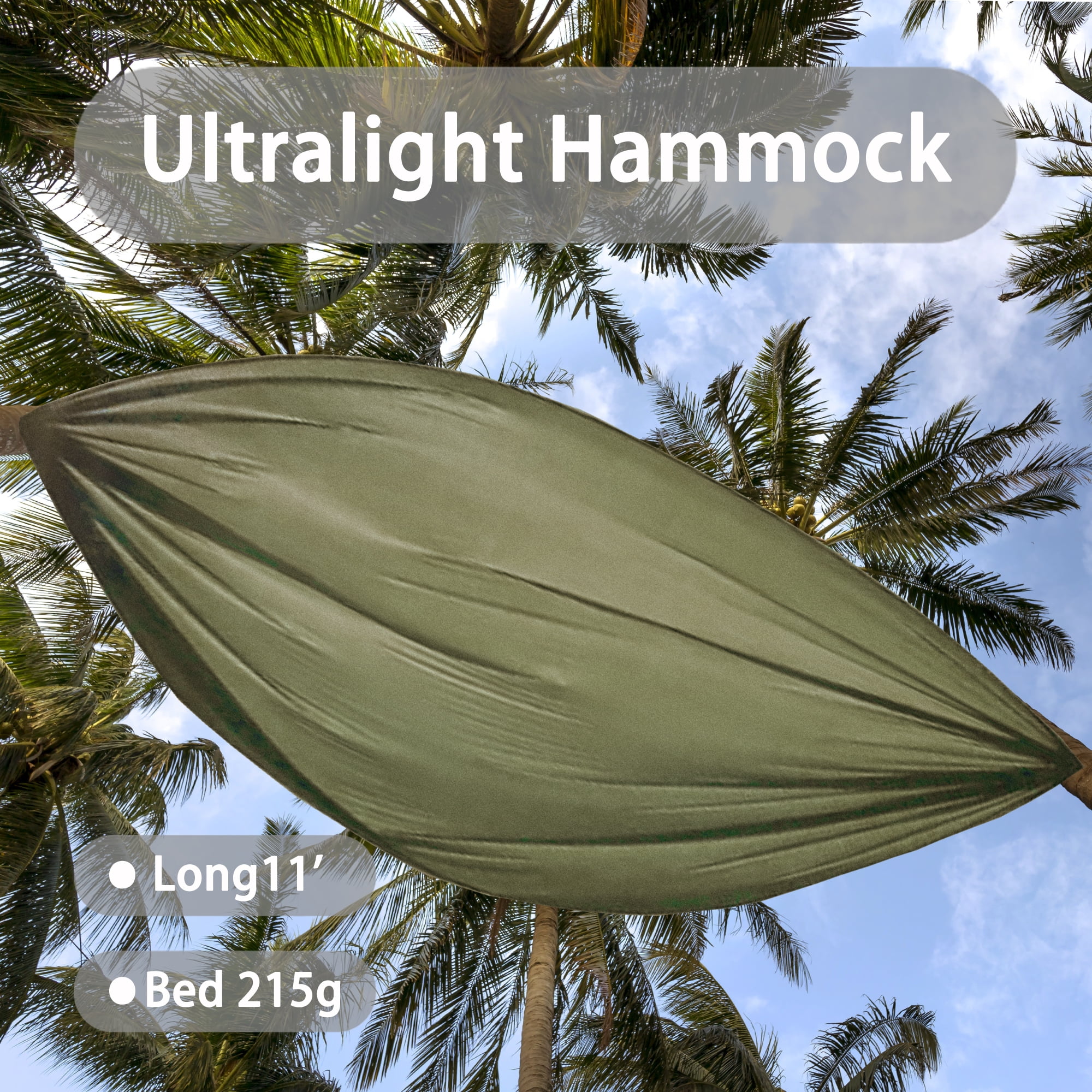 Onewind 11' Camping Hammock with Tree Straps, Olive Green (up to 210 lbs)