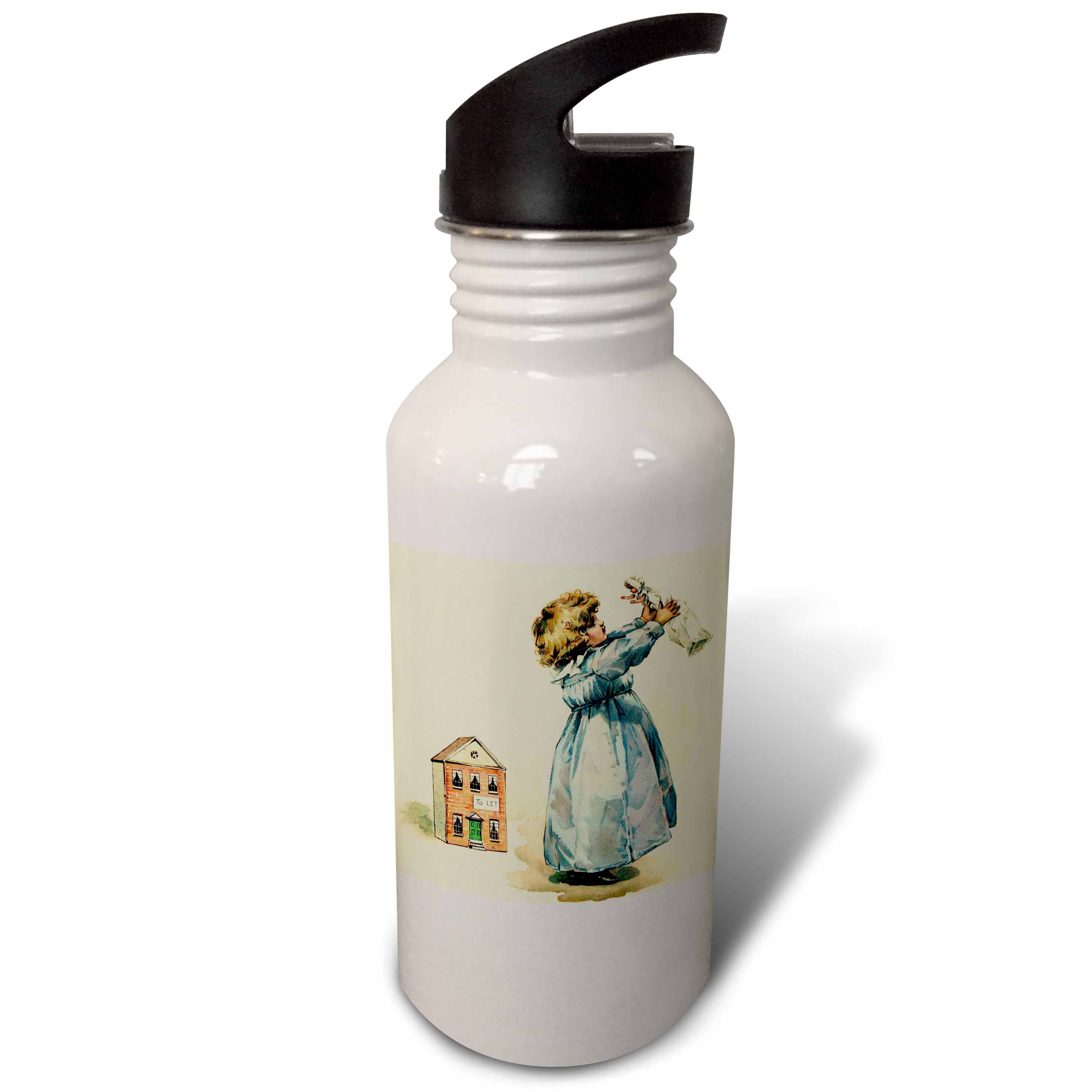 Adorable Girl With Doll n Dollhouse 21 oz Sports Water Bottle wb-41726-1