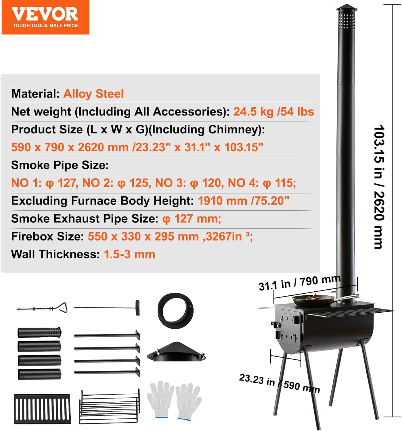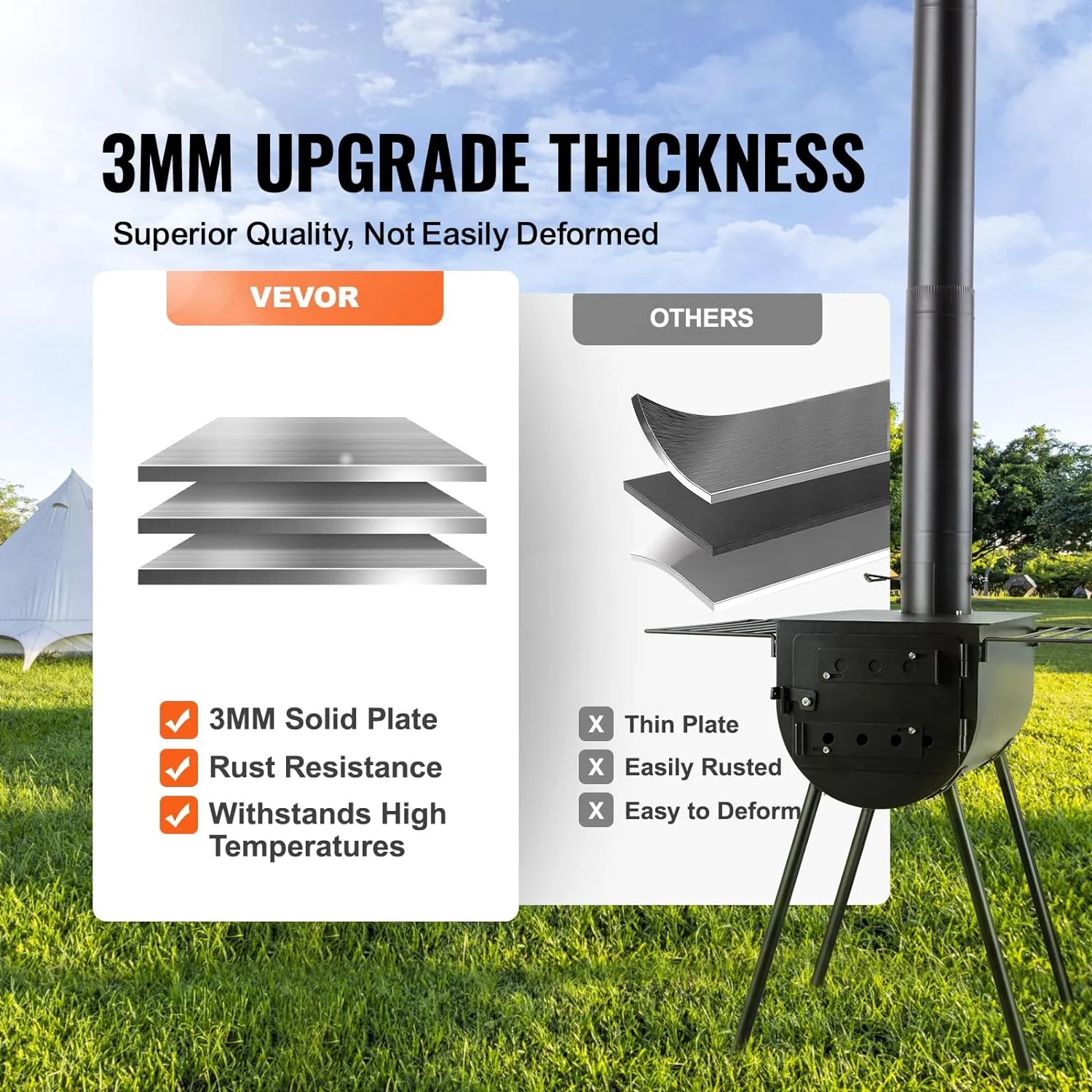 OUWI Hot Tent Stove, Large Side Window, Winter Wood Burning Stove for Heating Cooking Camping Hunting (XL)