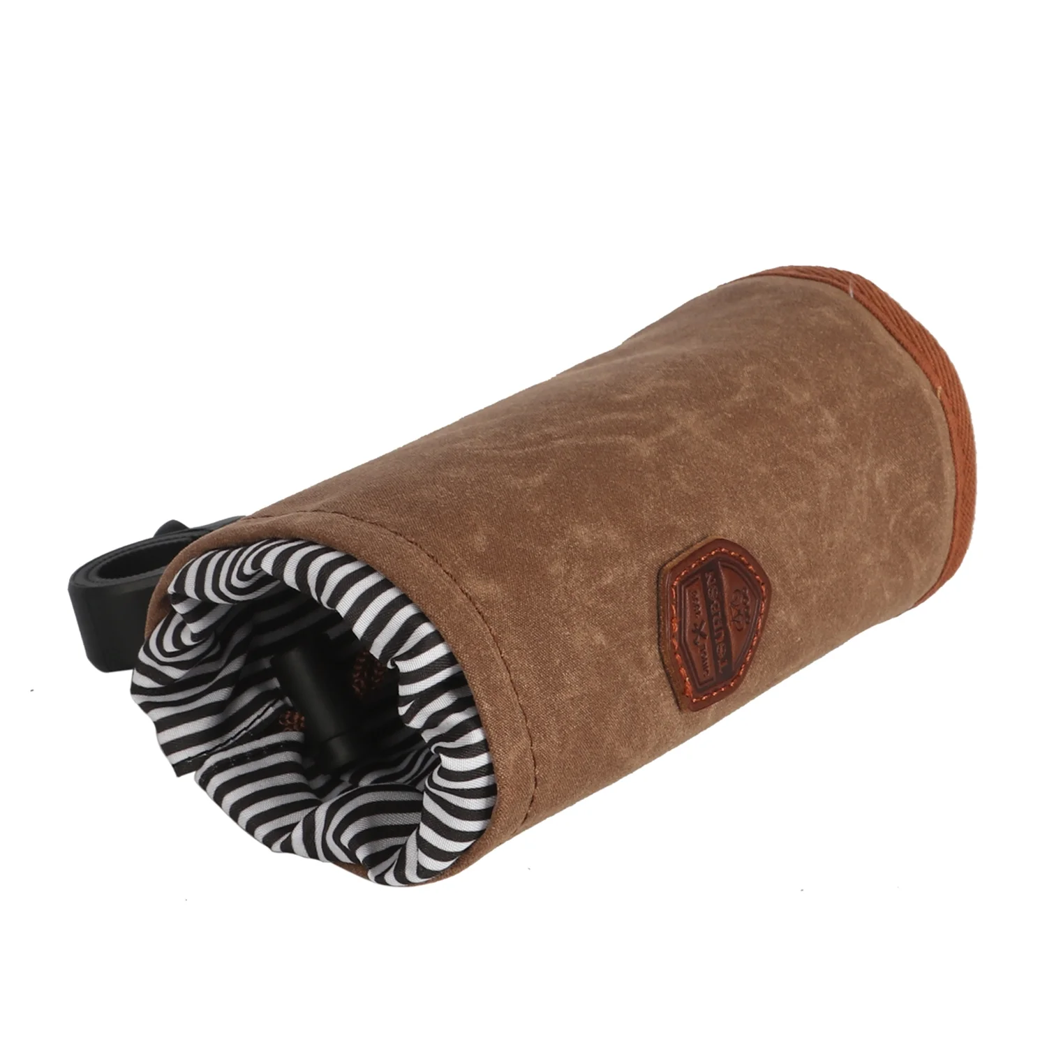 TOURBON Canvas Bike Coffee Cup Holder Cage Handlebar Mount Bottle Kettle Pouch Brown