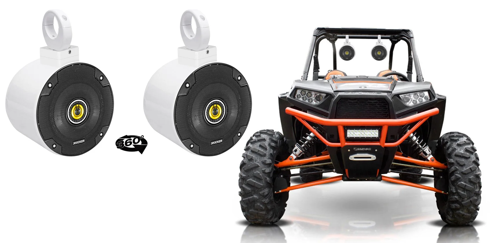 (2) kicker CSC54 5.25" 360° Swivel White Aluminum Tower Speakers For RZR/ATV/UTV