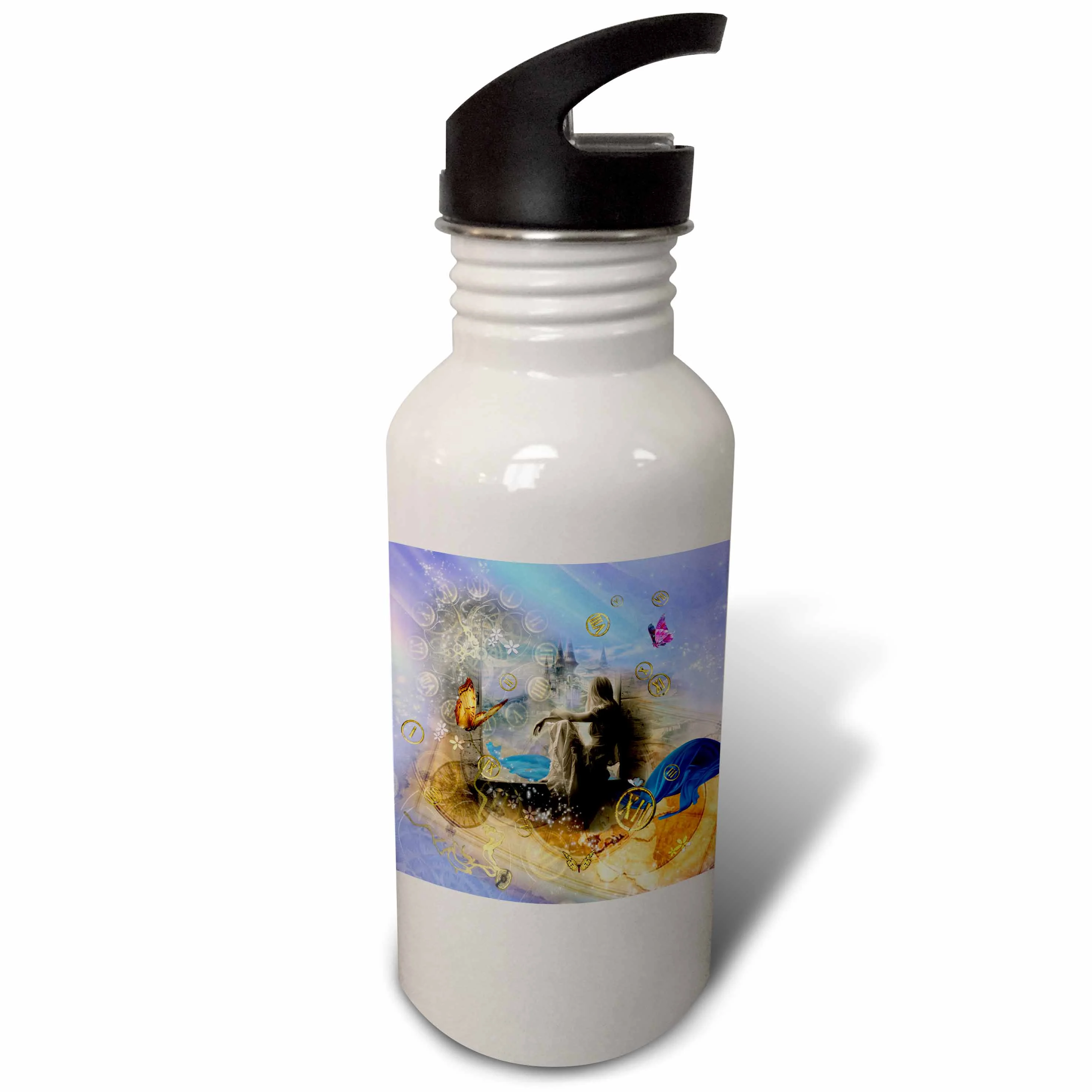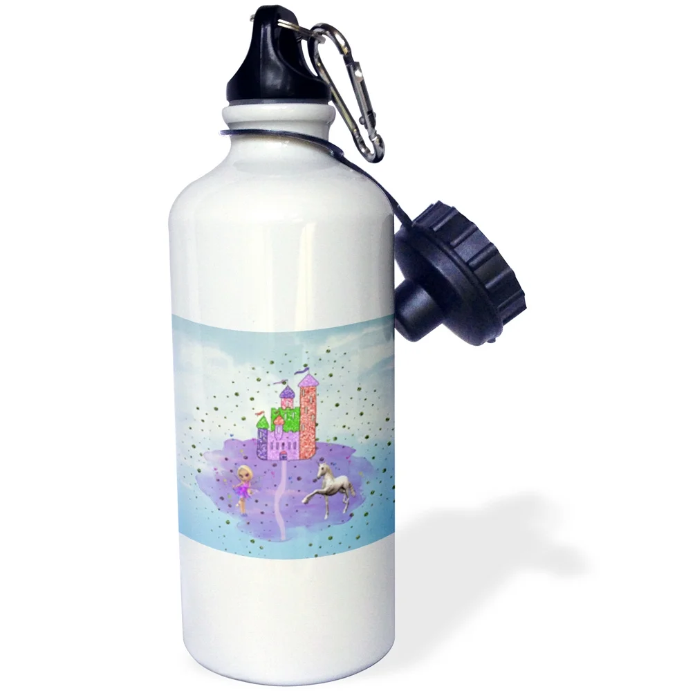 3dRose Glitter Look Castle with Fairy Princess and Unicorn - Straw Water Bottle, 21-ounce