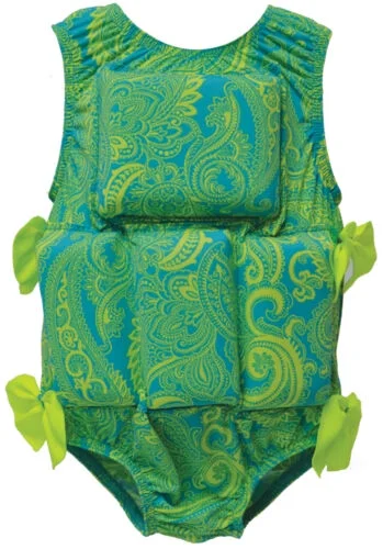 My Pool Pal Girl's or Boy's Swimwear Flotation Lifevest Swimsuit (Lime Paisley, Medium)