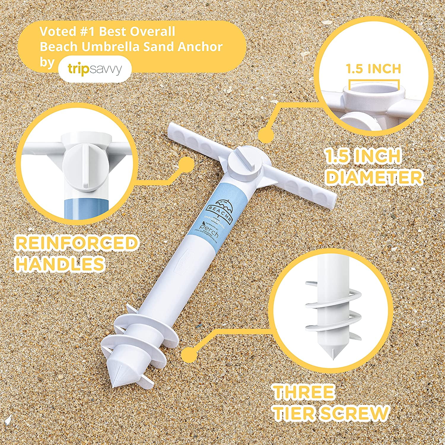 Beachr Beach Umbrella Sand Anchor, One Size Fits All, Safe Stand for Strong Winds, Screw 15 in White
