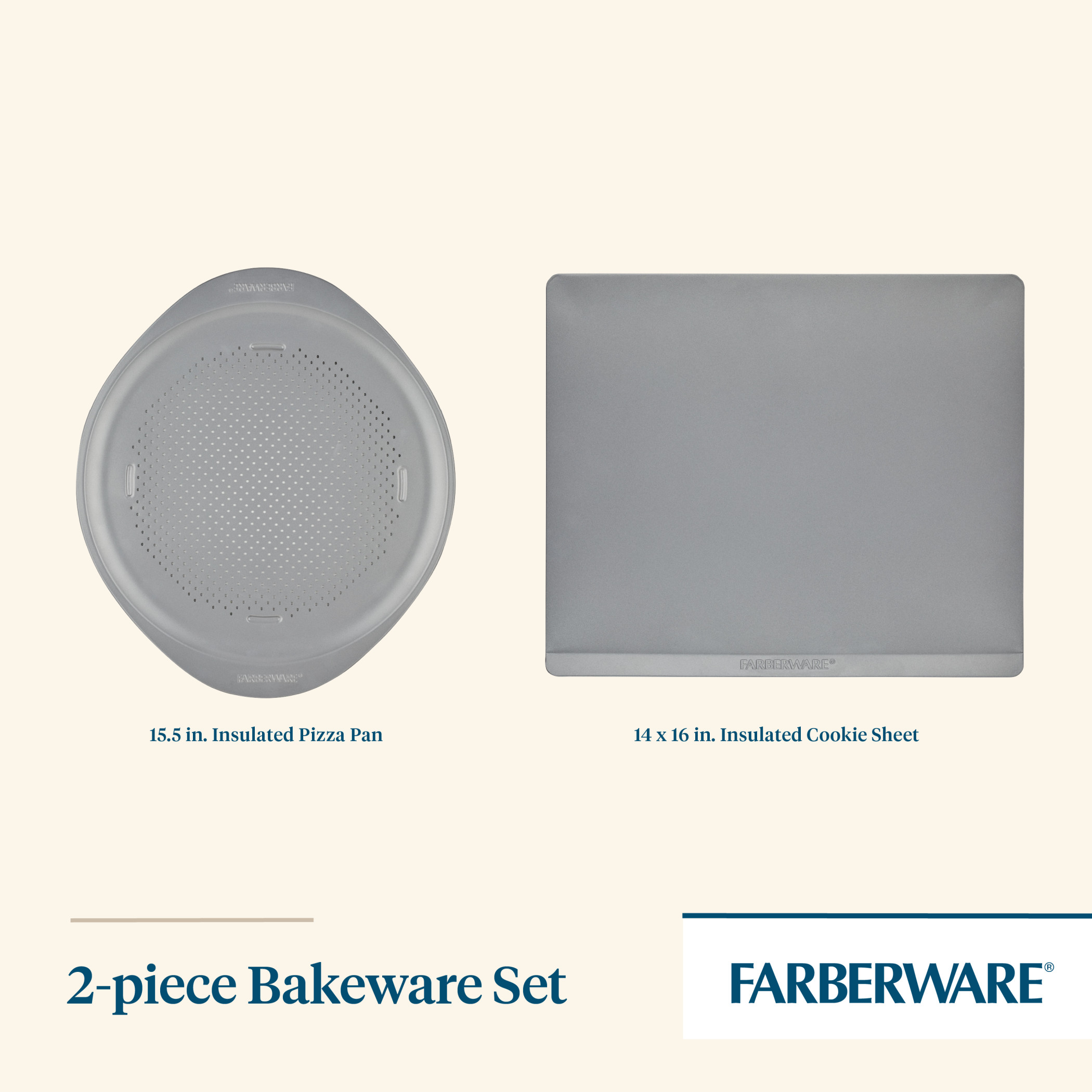 Farberware GoldenBake Nonstick Baking Sheet and Pizza Crisper Pan Set, 2-Piece, Gray