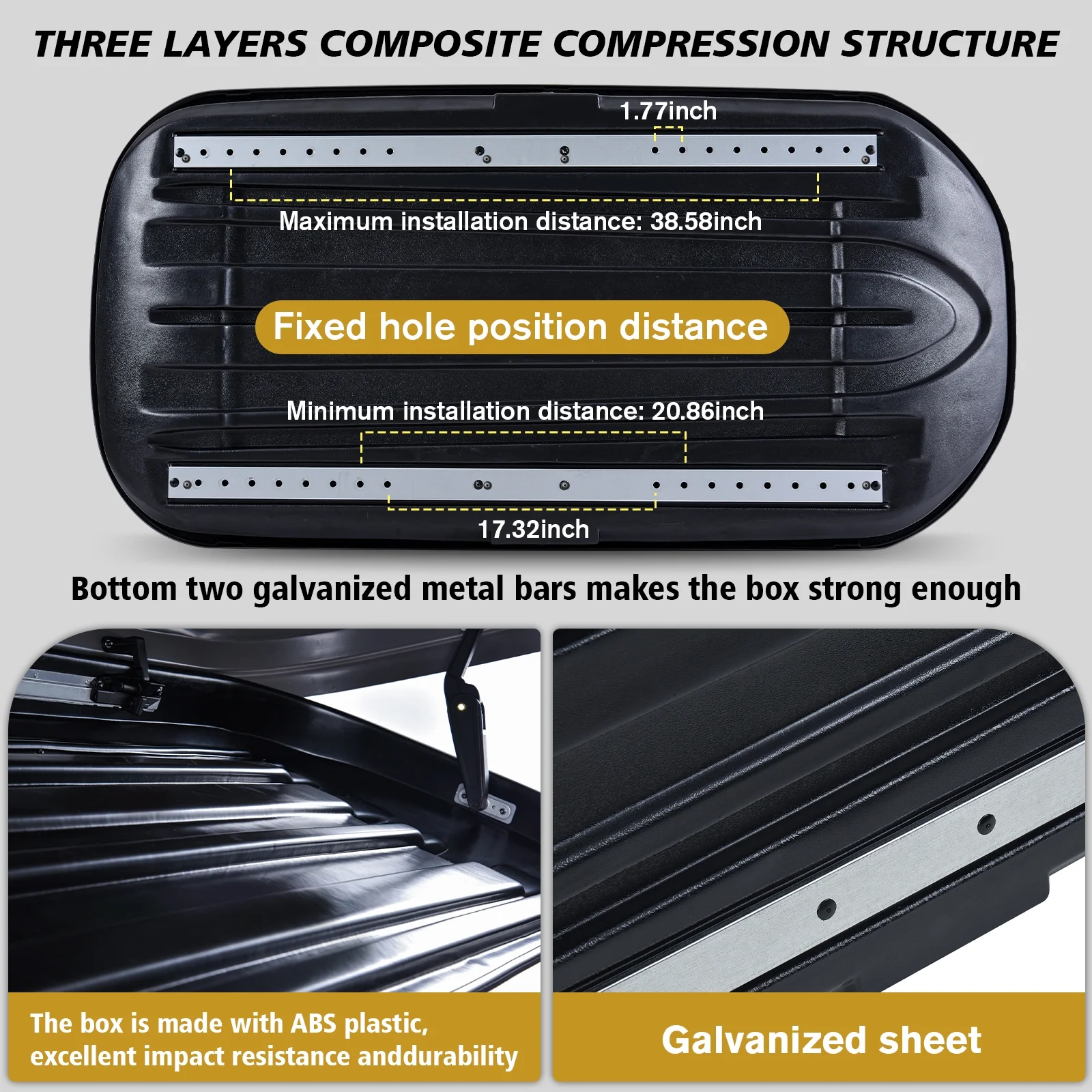 62 x 31 x15 inch hard shell roof luggage rack, roof box with safety key