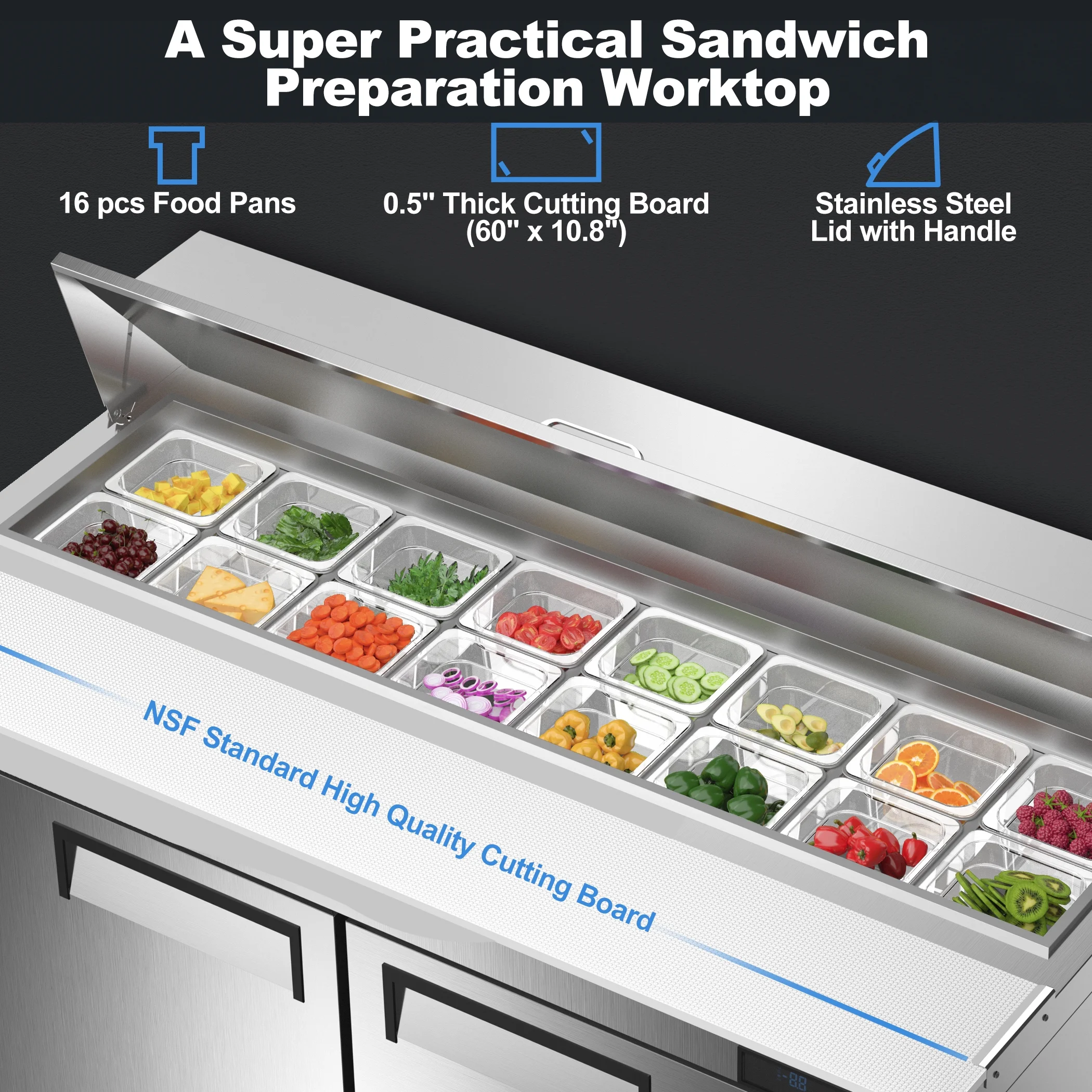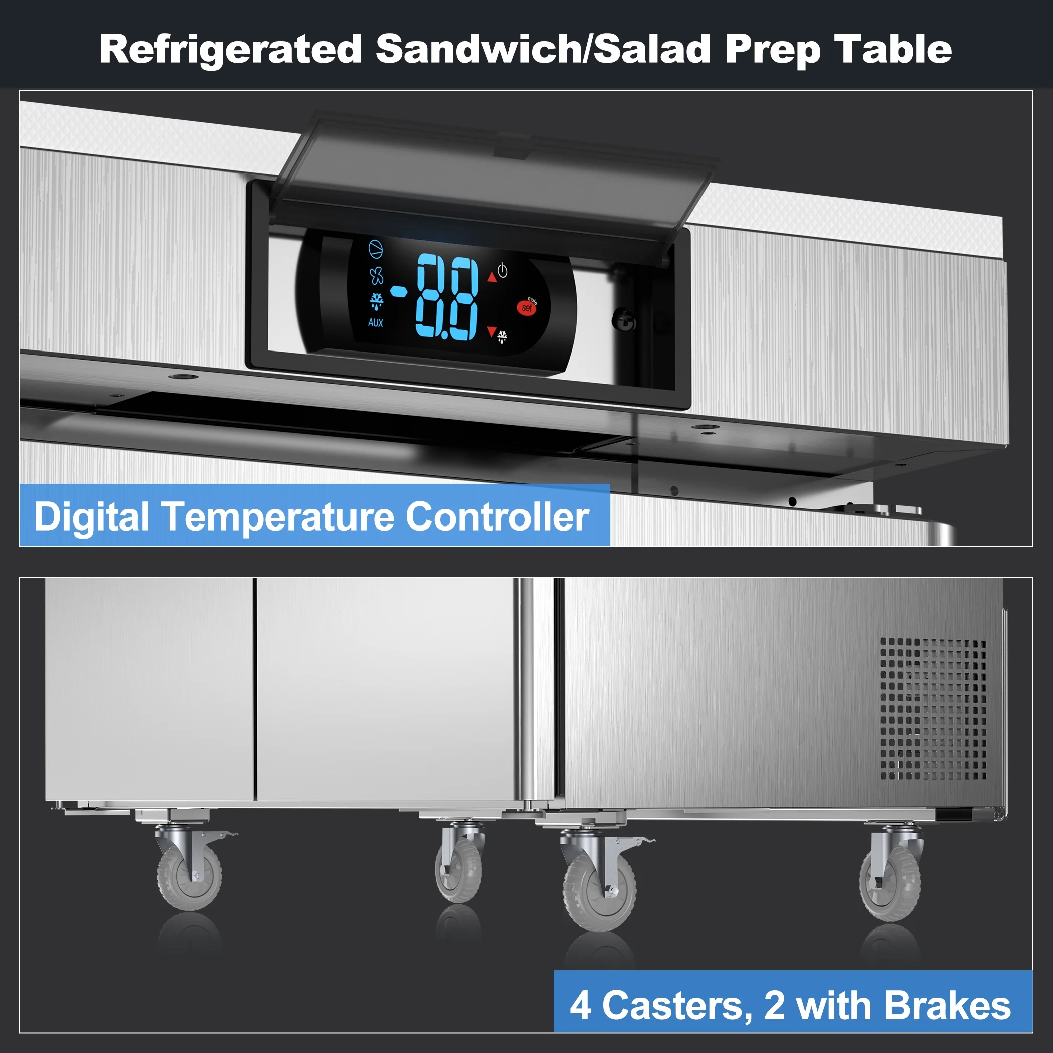 Vevor 72 in. 17.73 cu. ft. Commercial Refrigerator Sandwich, Salad Prep Table Stainless Steel Refrigerated Food Prep Station