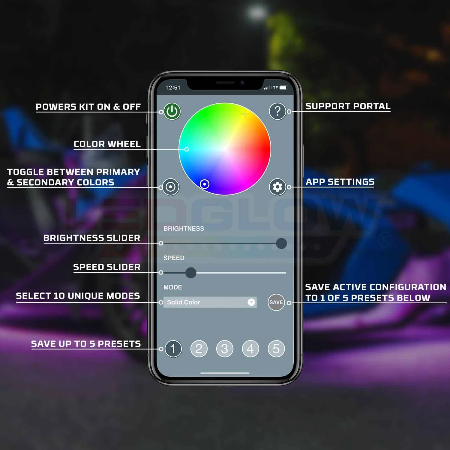 LEDGlow 20pc Advanced Million Color Slingshot Lighting Kit with Smartphone Control