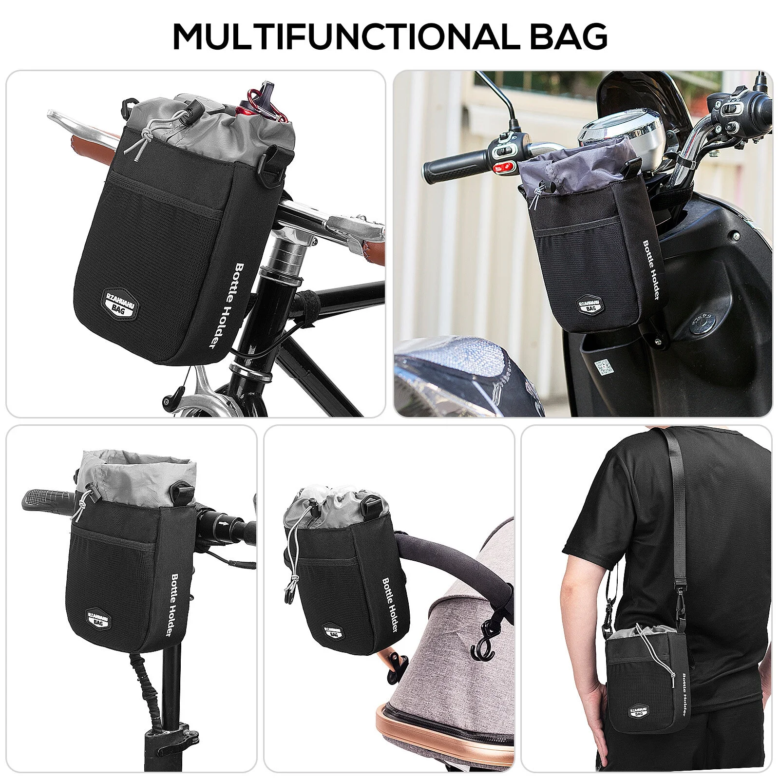 TOURBON Bike Handlebar Pouch Bicycle Water Bottle Drink Cup Holder - Canvas and Leather