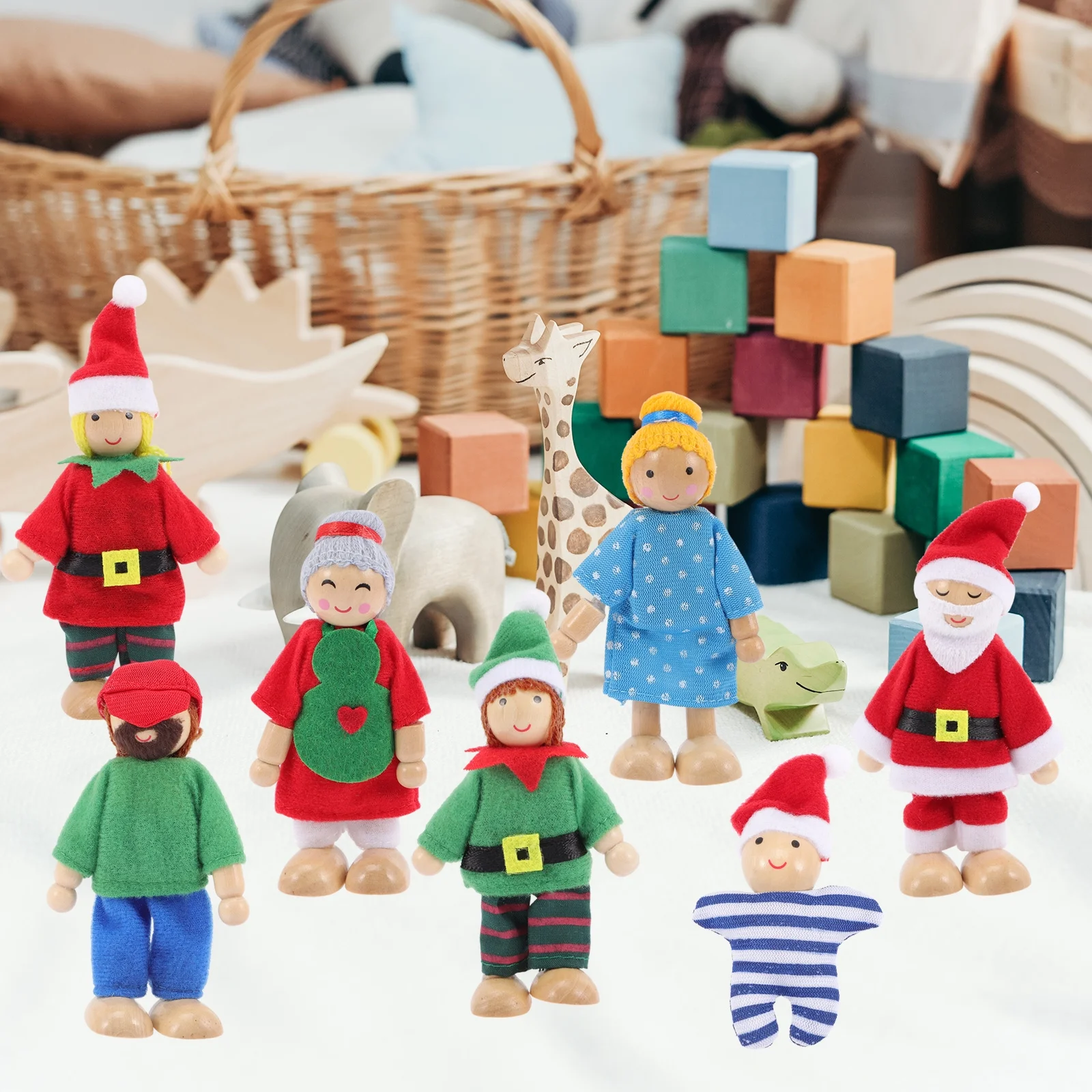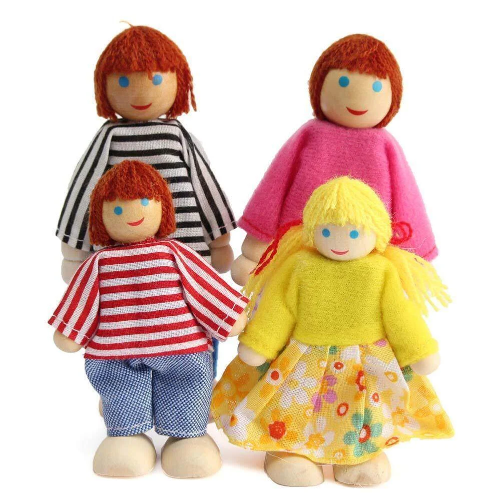 Family Doll Wooden Set Dollhouse Play House Role Dolls Figures Figure People Up Christmas Maumet Puppet Joint Character