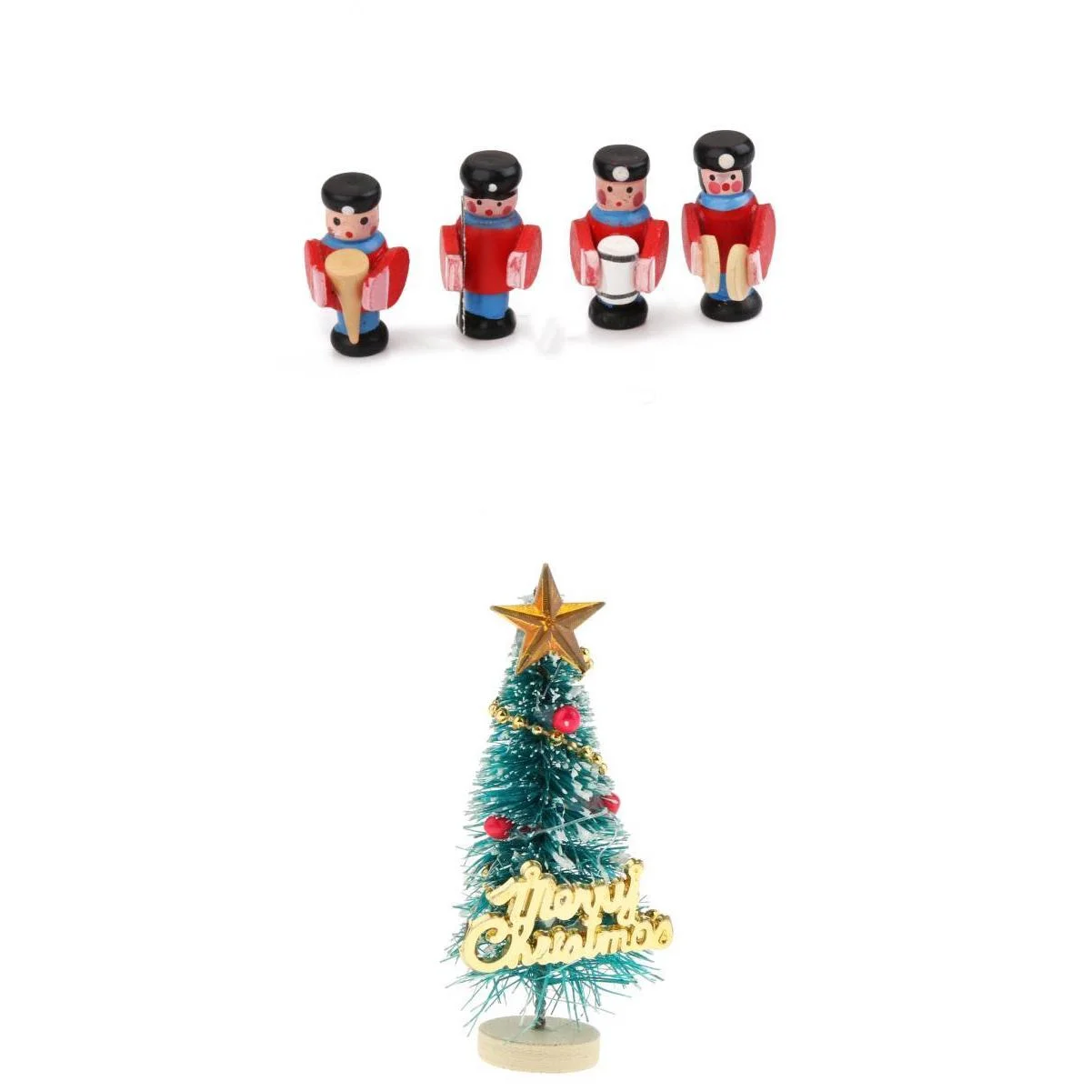 1:12 Scale Dollhouse Mini Christmas Tree with 4x Wooden Band People
