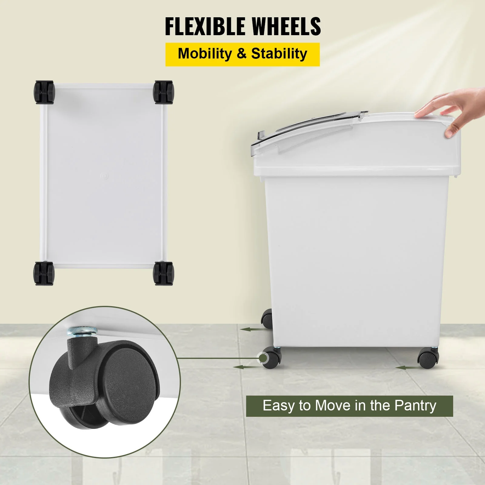 BENTISM Ingredient Storage Bin, Flour Bins On Wheels, 6.6 Gallons Capacity, 3 Pcs/Set